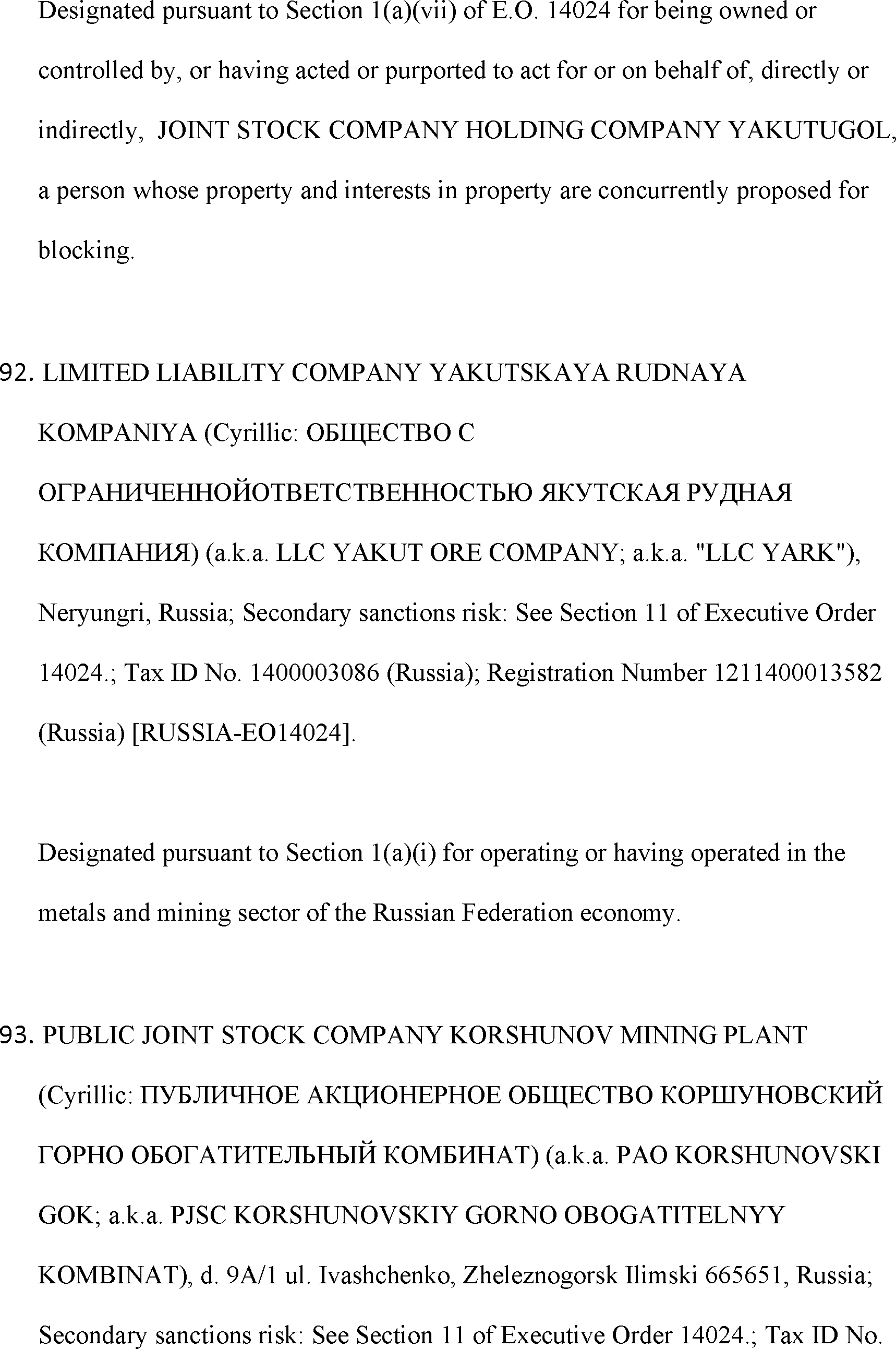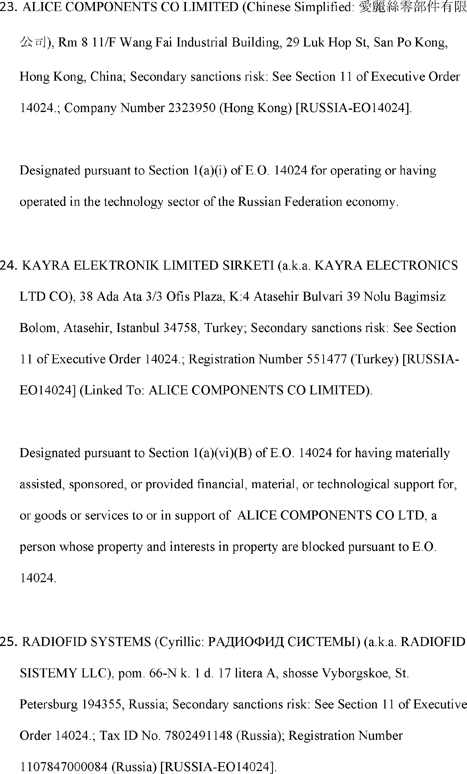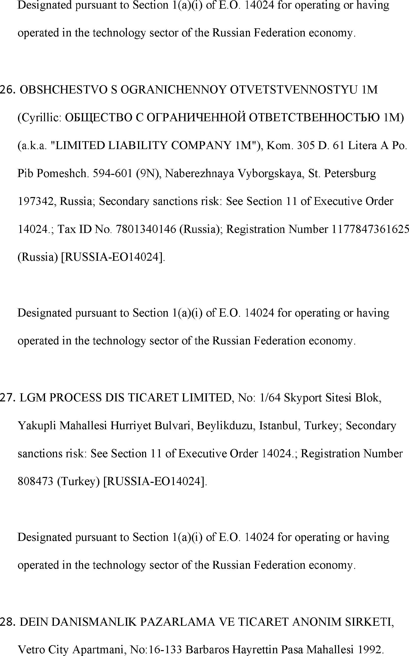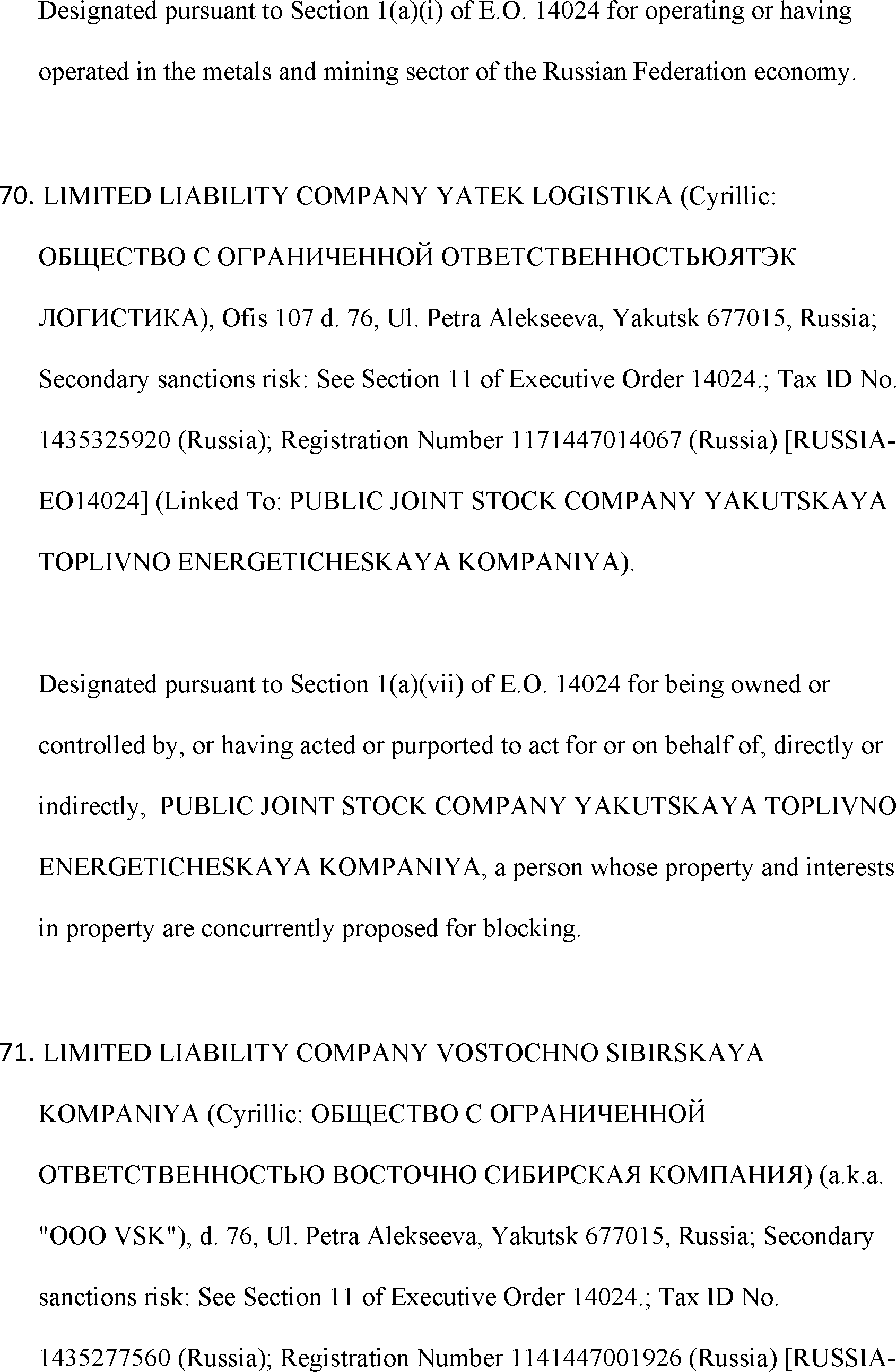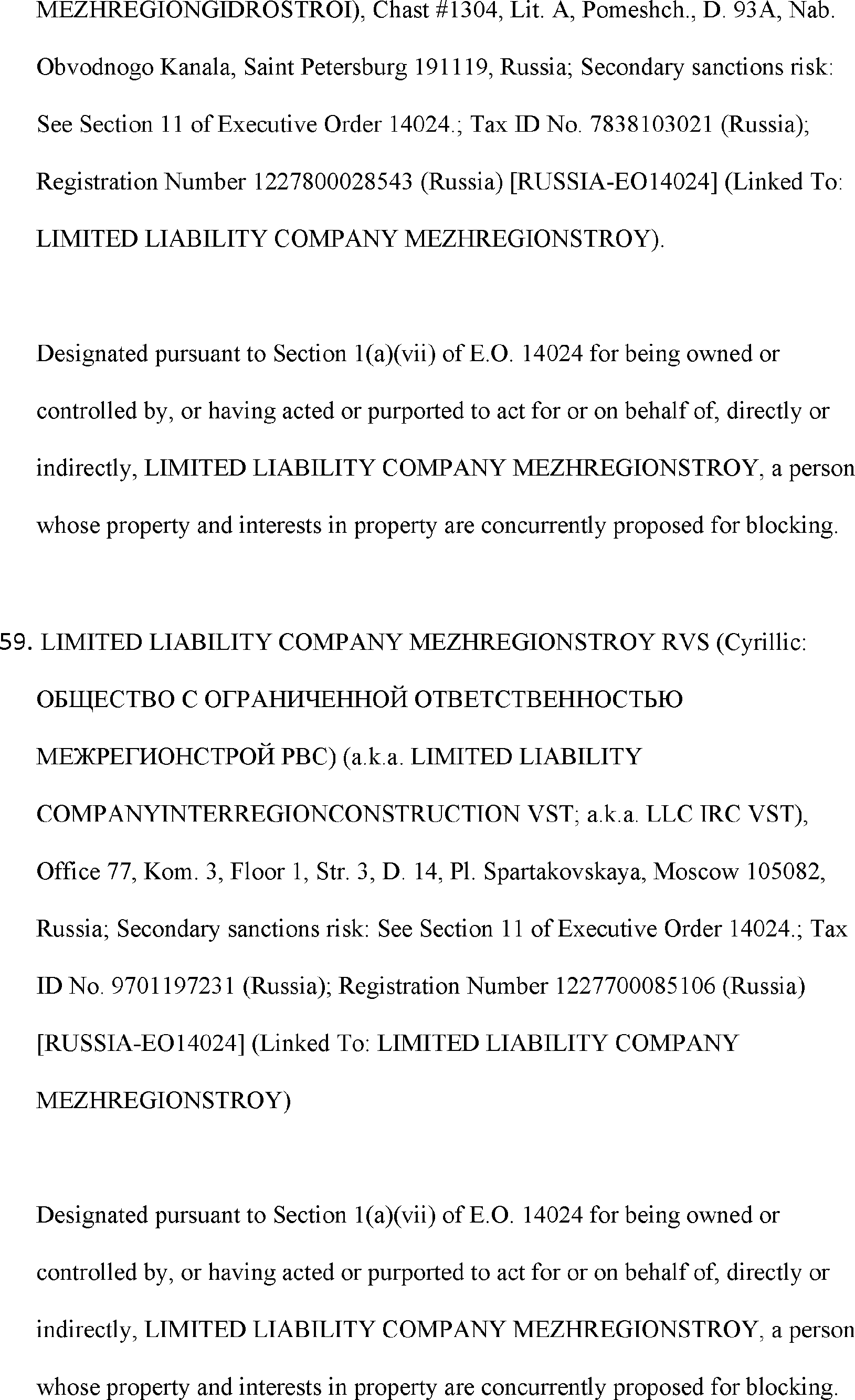 “Notice of Department of State Sanctions Actions Pursuant to the Executive Order Regarding Blocking Property With Respect to Specified Harmful Foreign Activities of the Government of the Russian Federation,” thefederalregister.org (February 21, 2025), https://thefederalregister.org/documents/2025-02899/notice-of-department-of-state-sanctions-actions-pursuant-to-the-executive-order-regarding-blocking-property-with-respect.