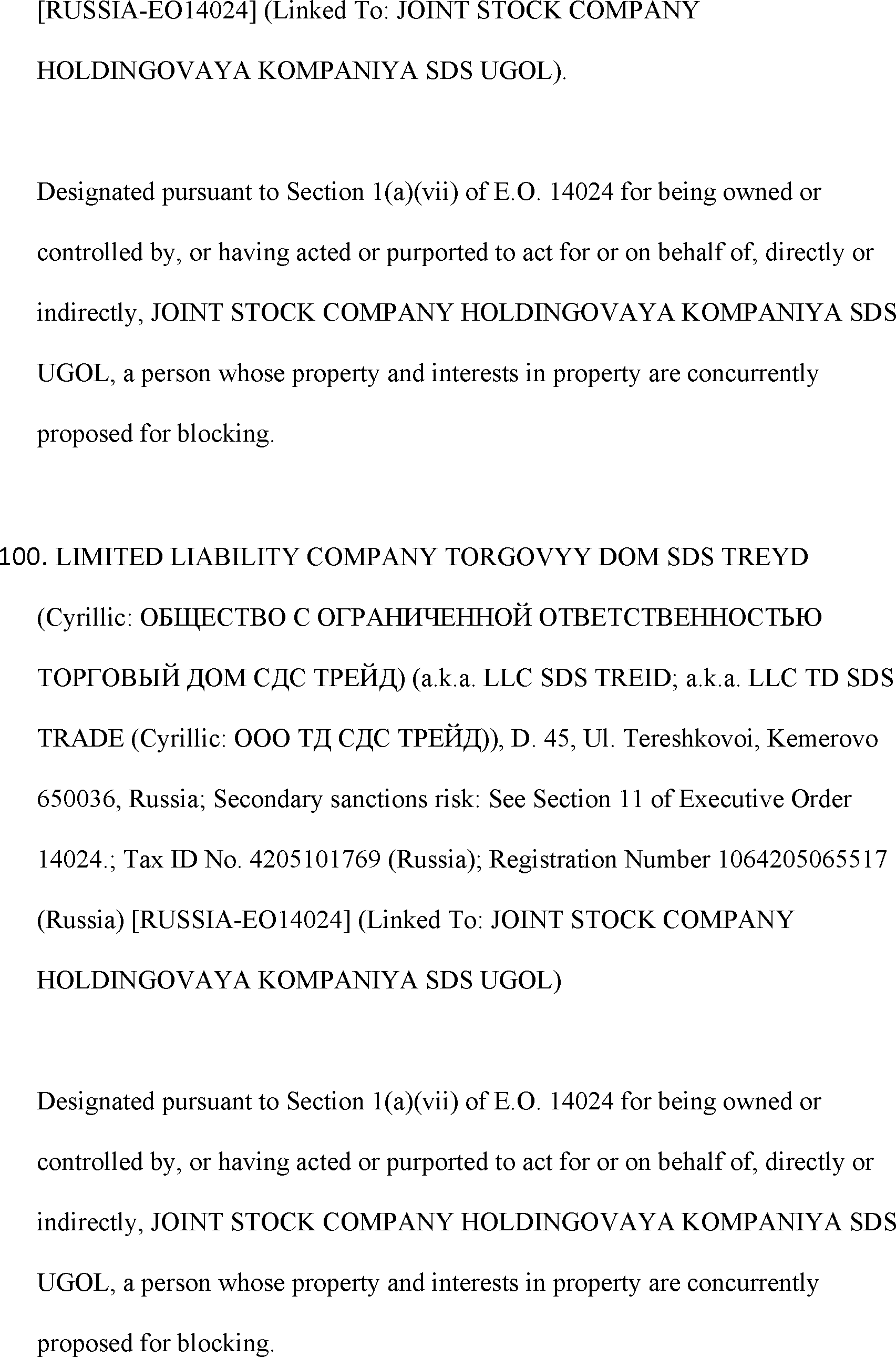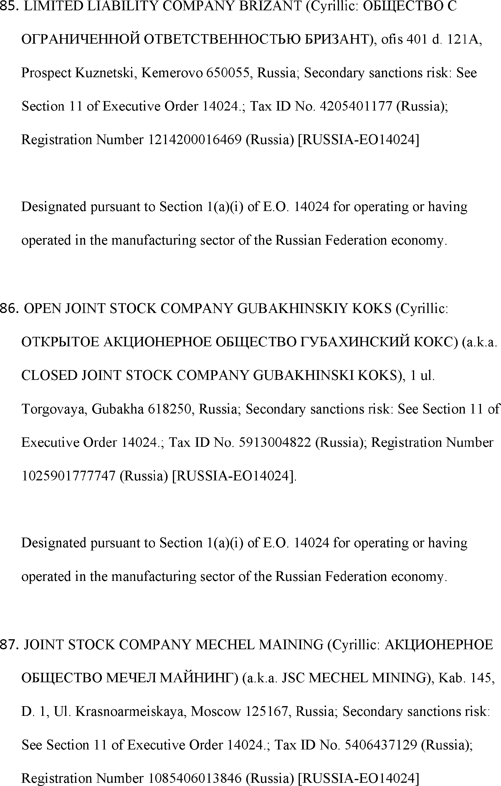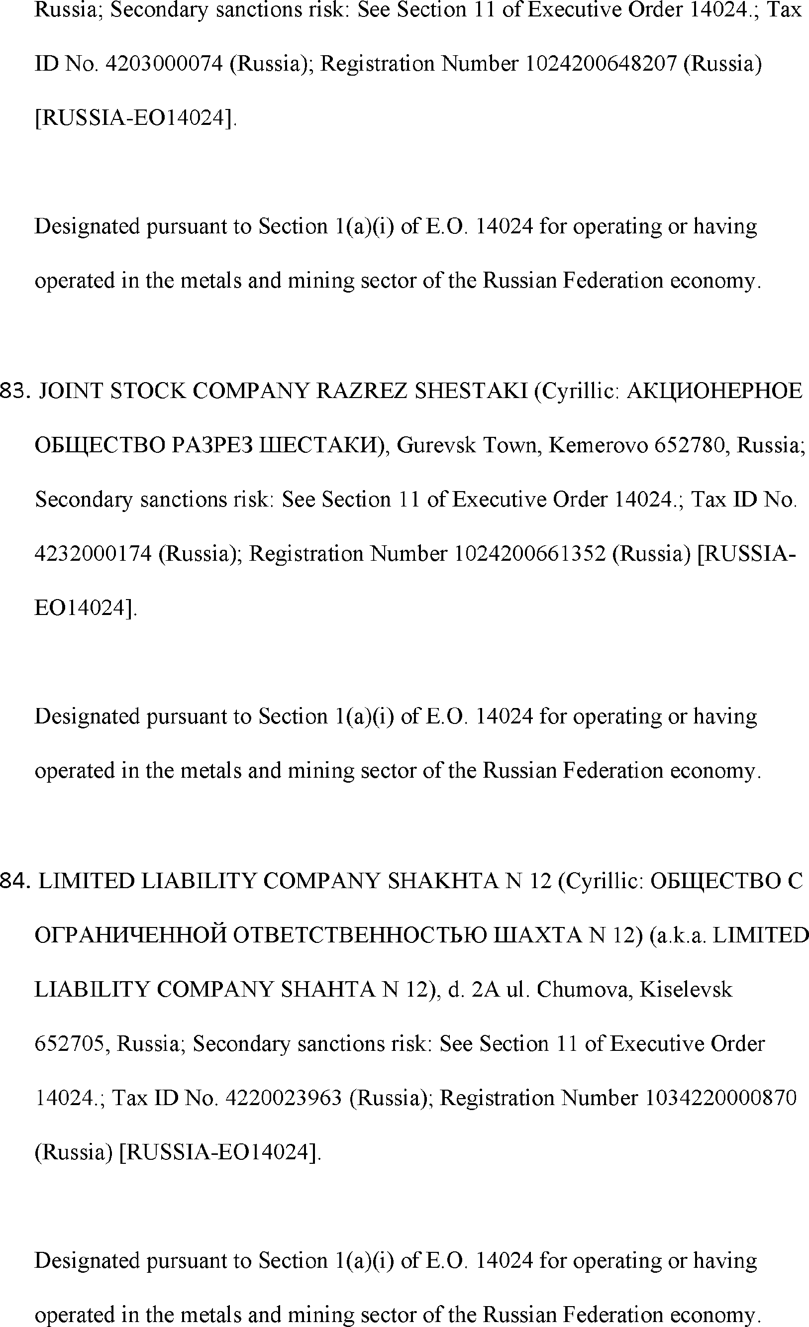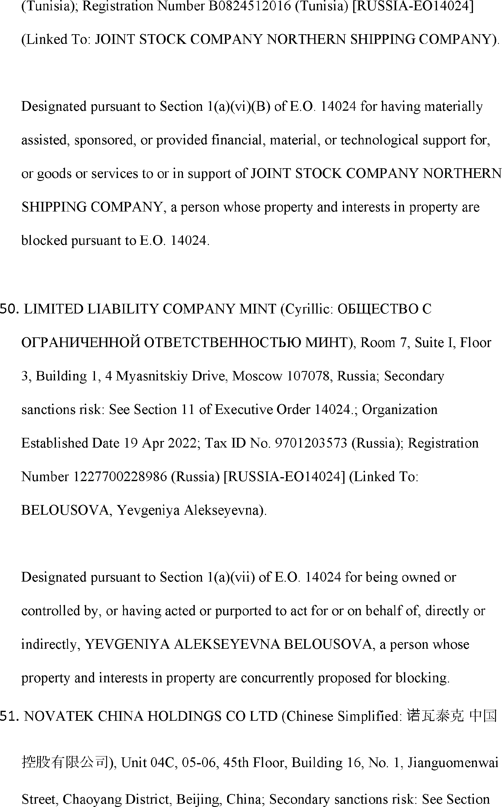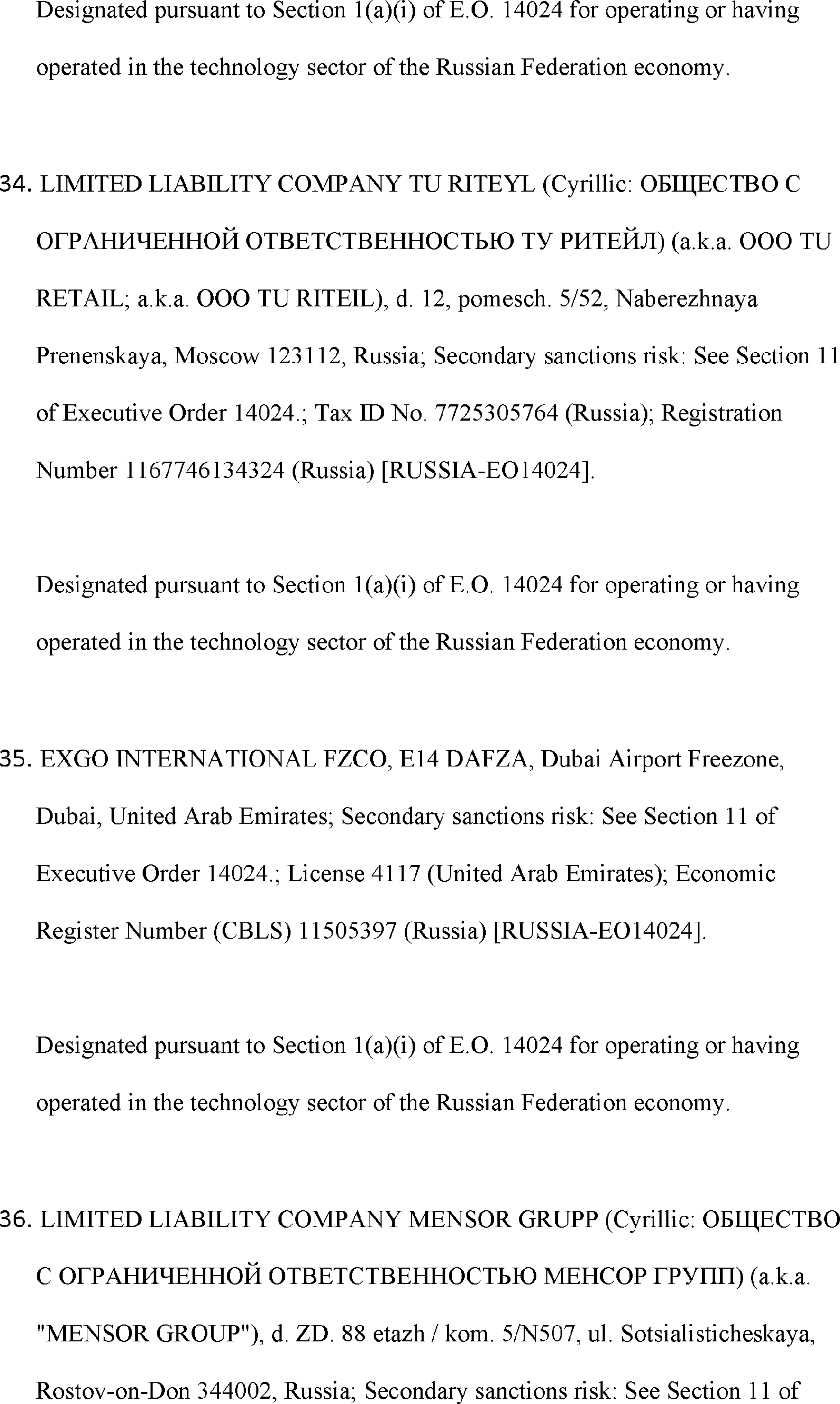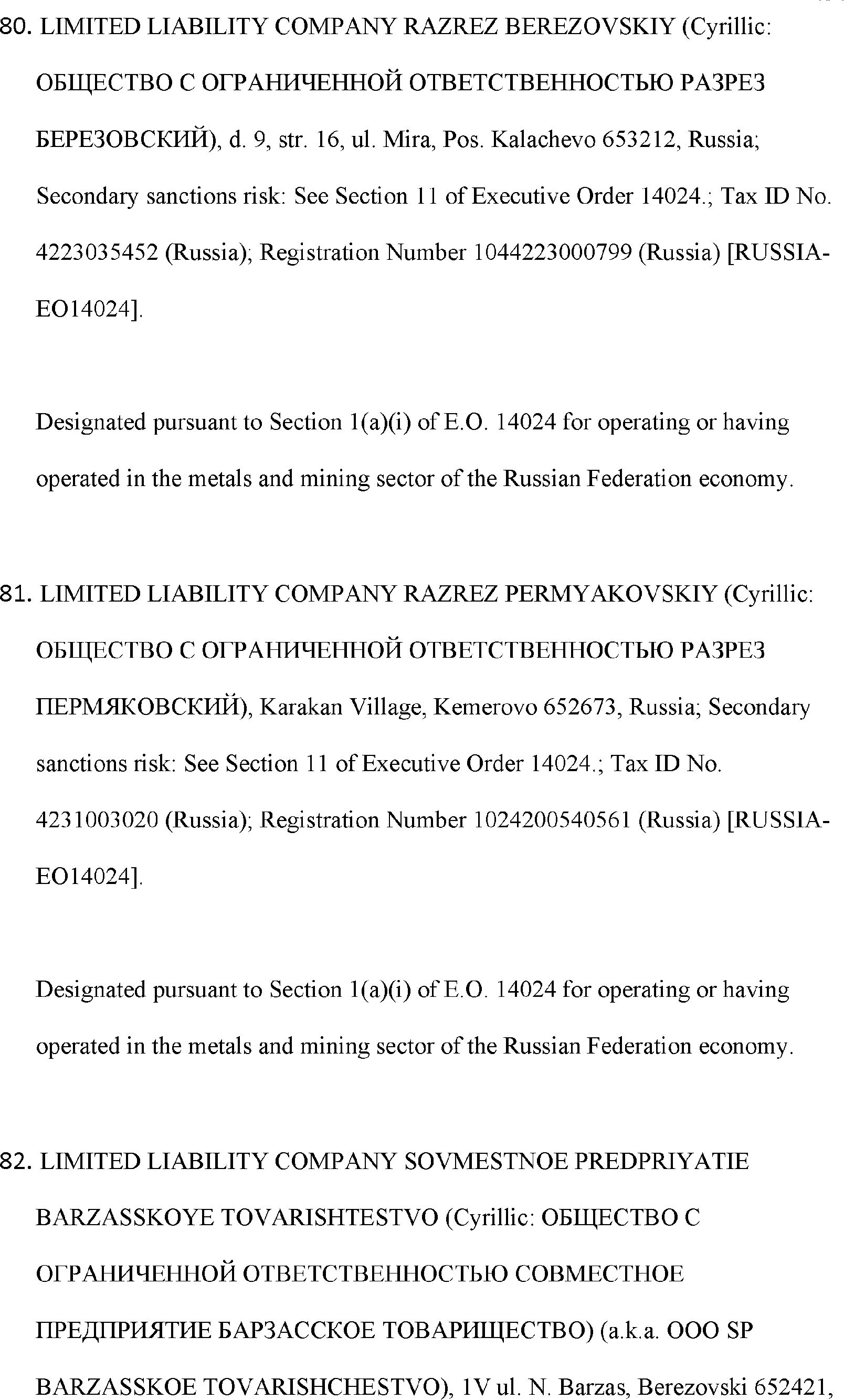 “Notice of Department of State Sanctions Actions Pursuant to the Executive Order Regarding Blocking Property With Respect to Specified Harmful Foreign Activities of the Government of the Russian Federation,” thefederalregister.org (February 21, 2025), https://thefederalregister.org/documents/2025-02899/notice-of-department-of-state-sanctions-actions-pursuant-to-the-executive-order-regarding-blocking-property-with-respect.