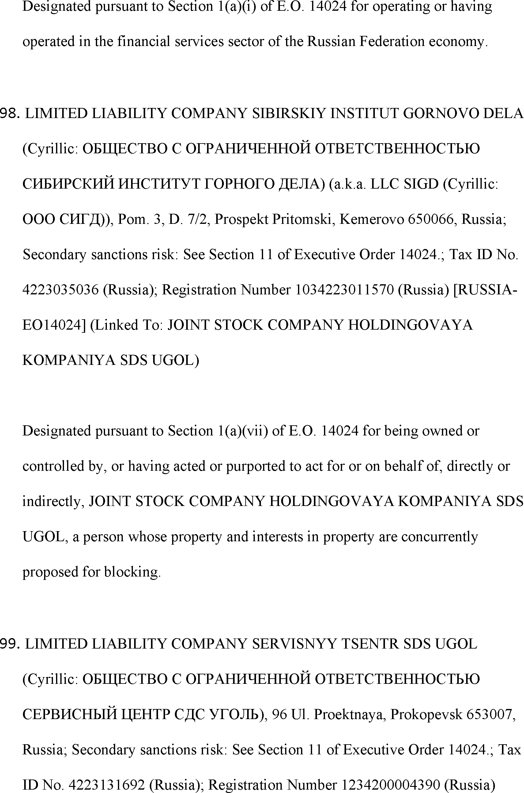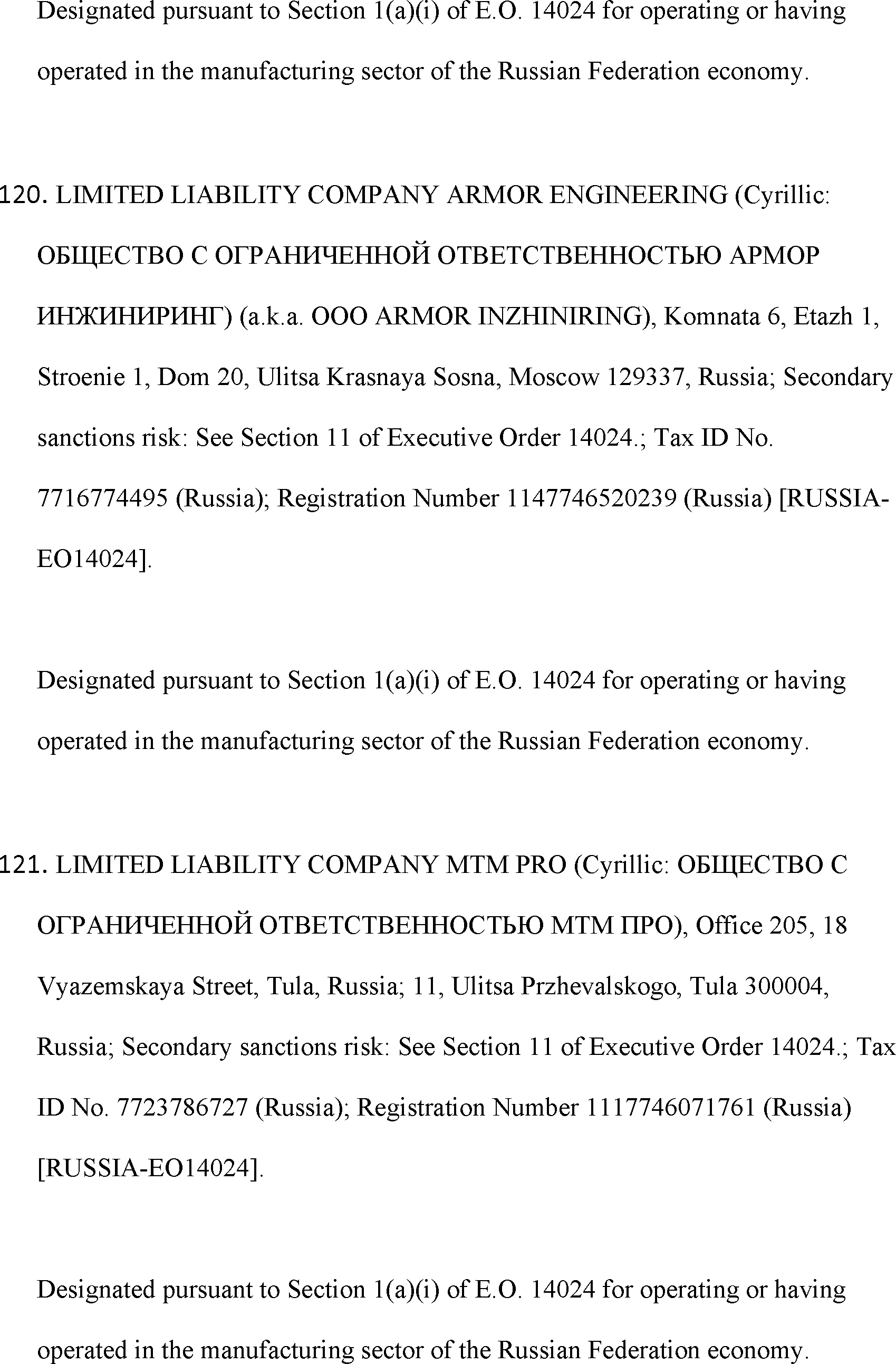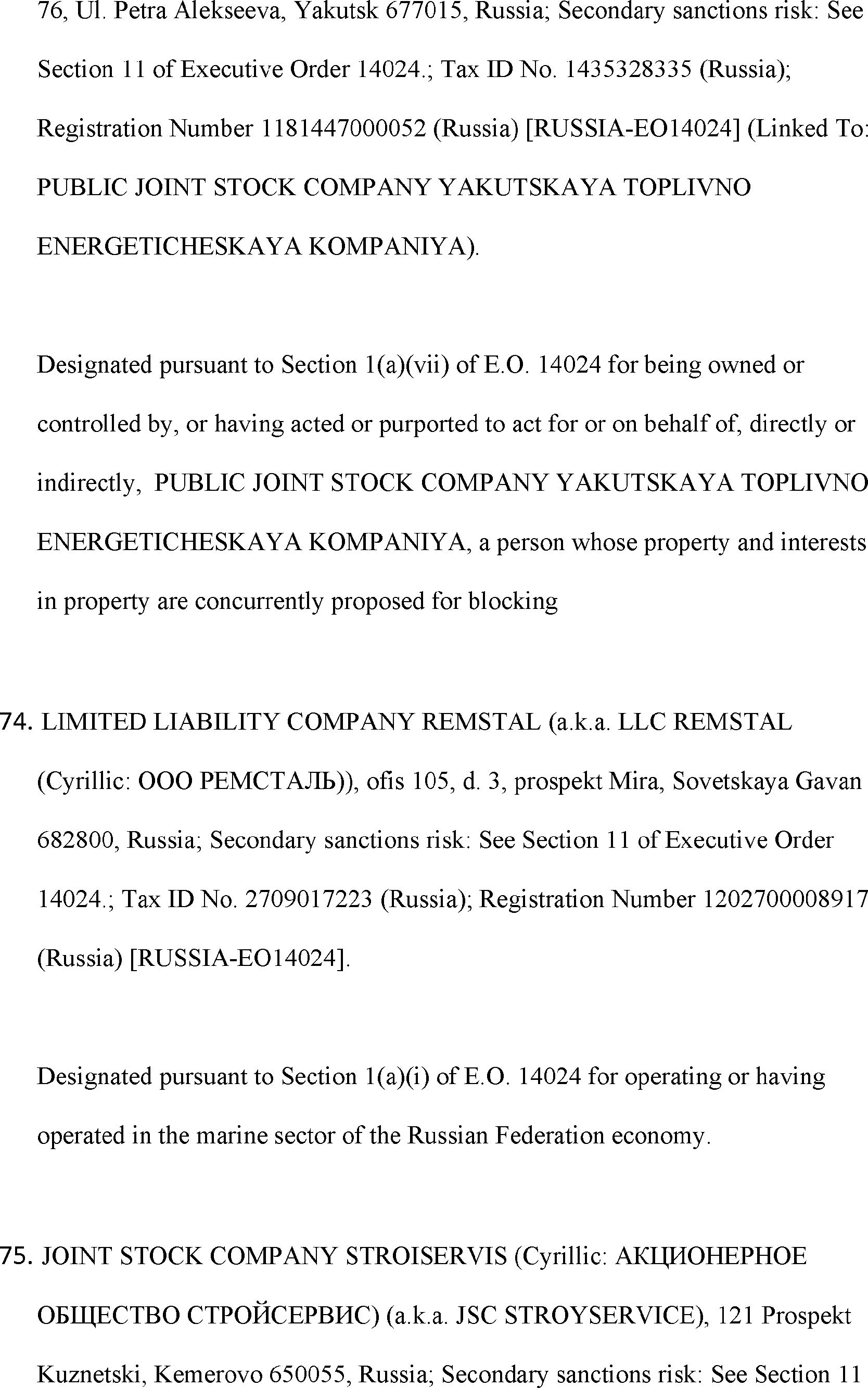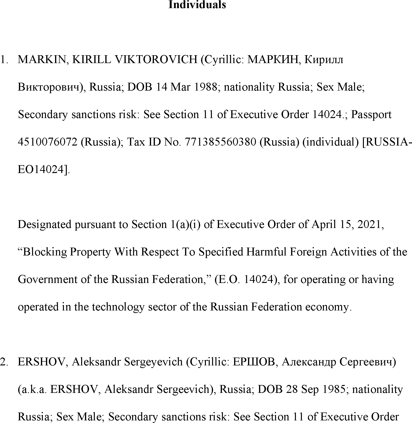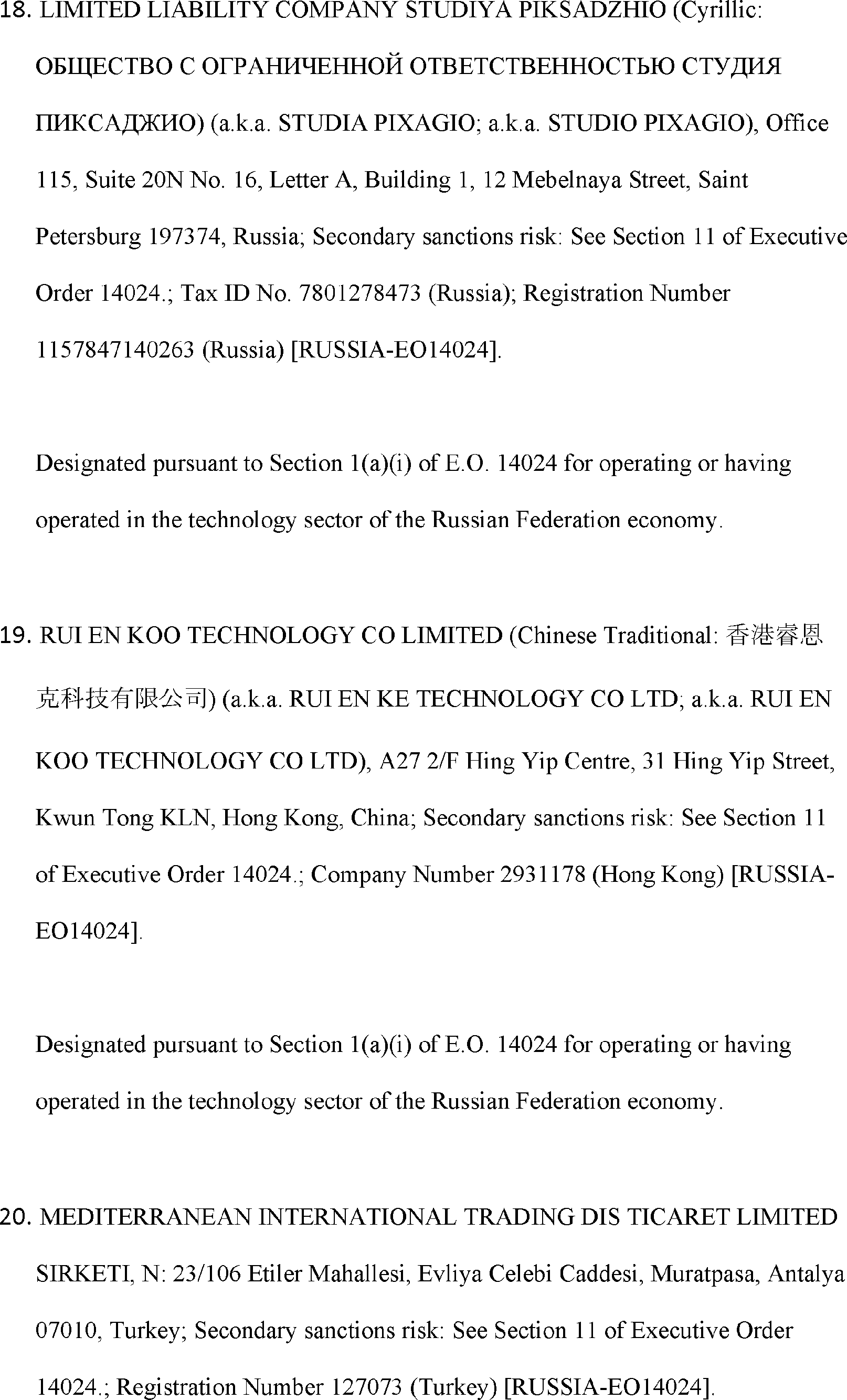 “Notice of Department of State Sanctions Actions Pursuant to the Executive Order Regarding Blocking Property With Respect to Specified Harmful Foreign Activities of the Government of the Russian Federation,” thefederalregister.org (February 21, 2025), https://thefederalregister.org/documents/2025-02899/notice-of-department-of-state-sanctions-actions-pursuant-to-the-executive-order-regarding-blocking-property-with-respect.
