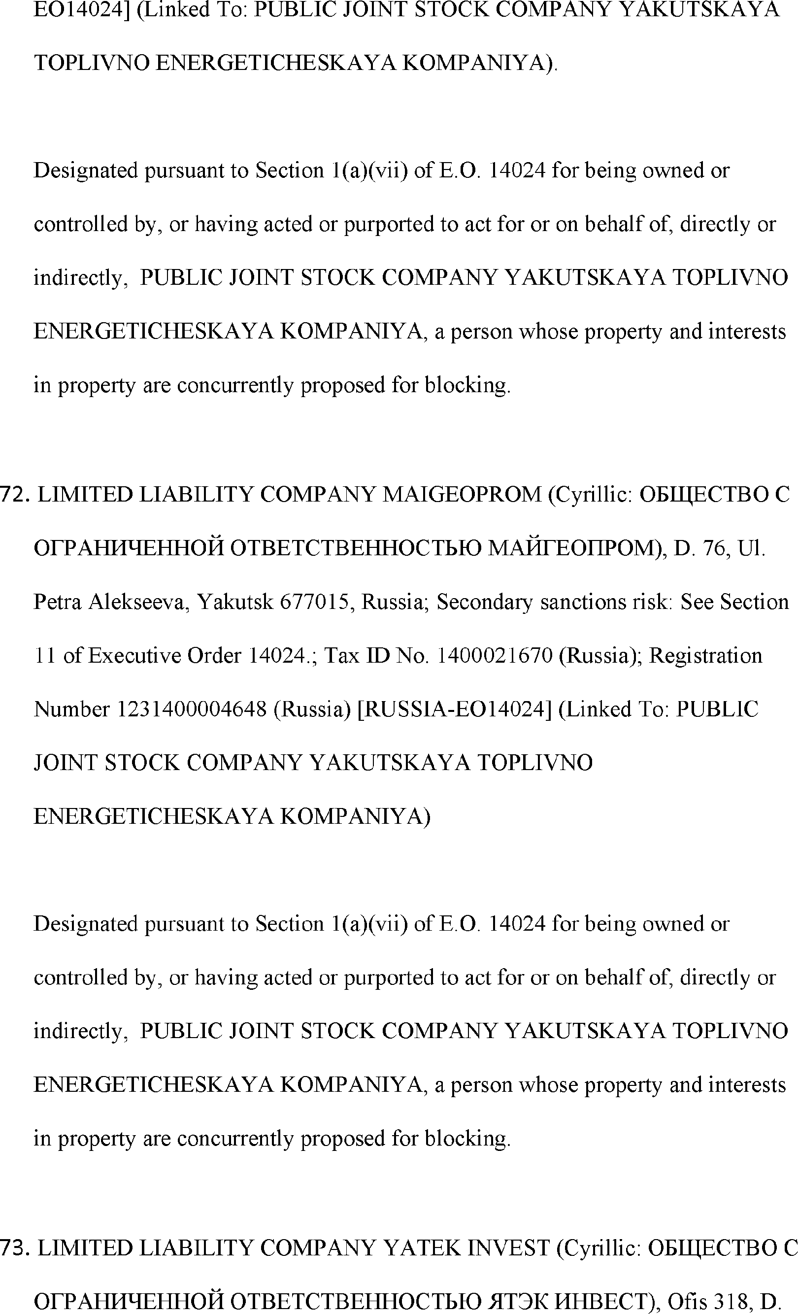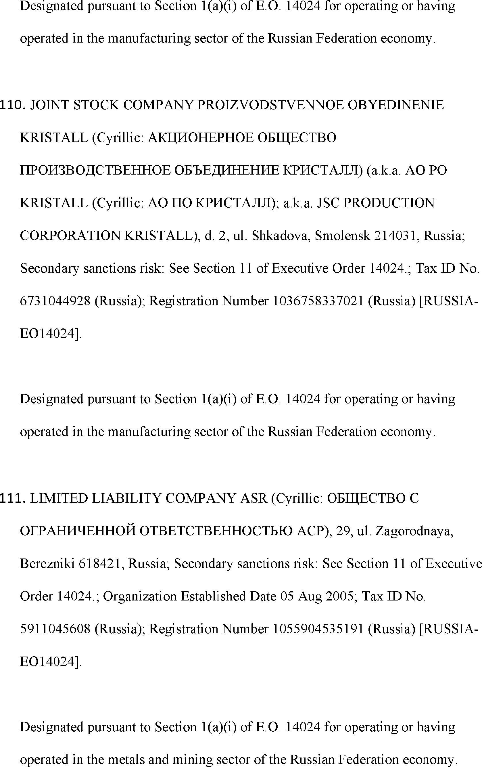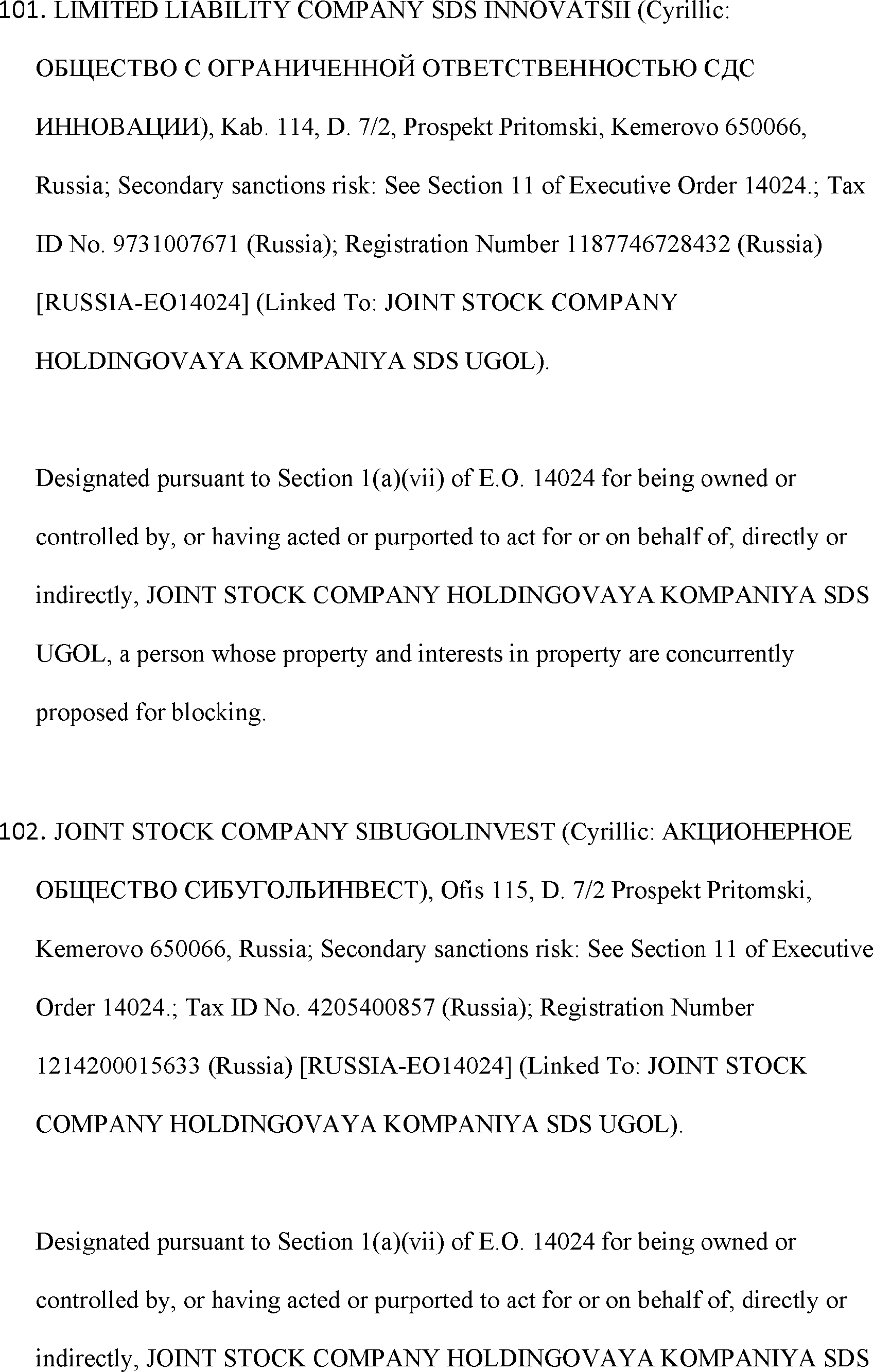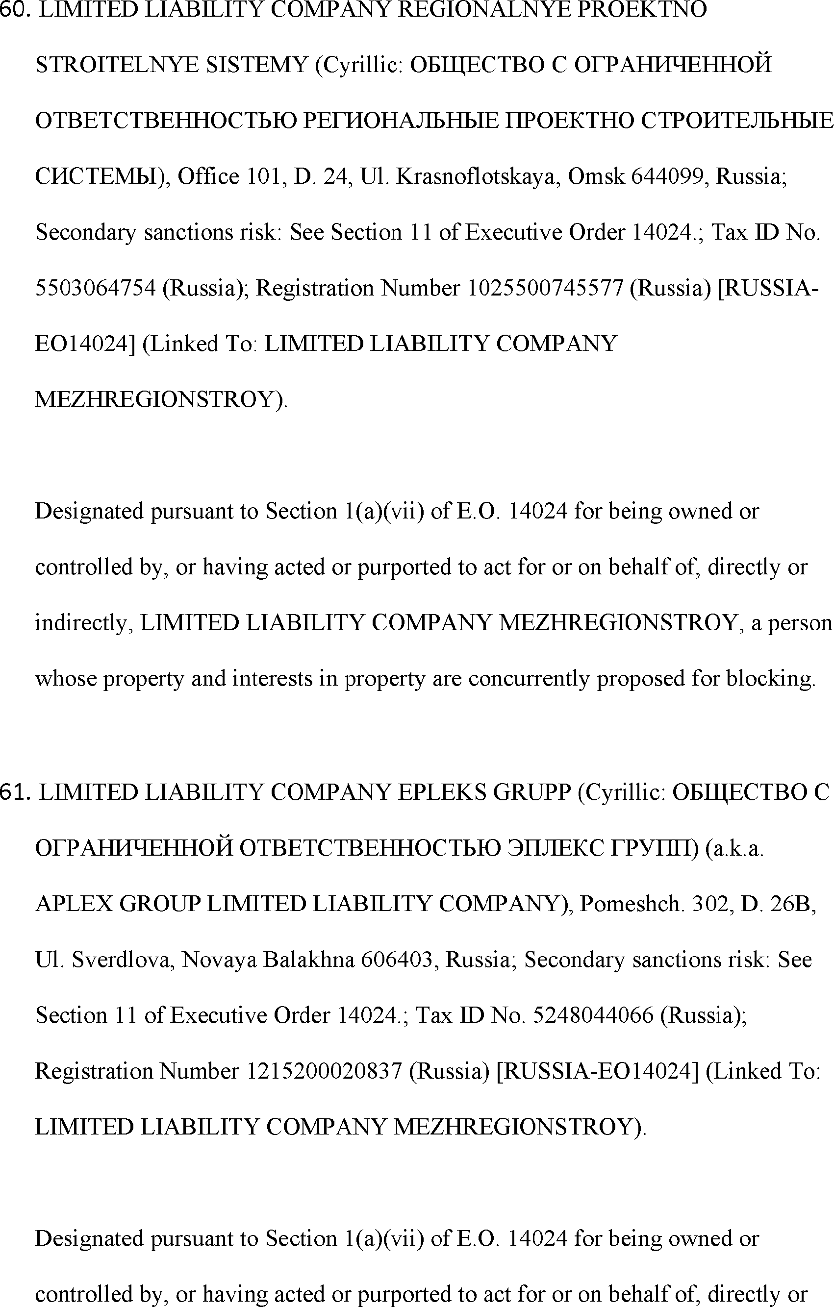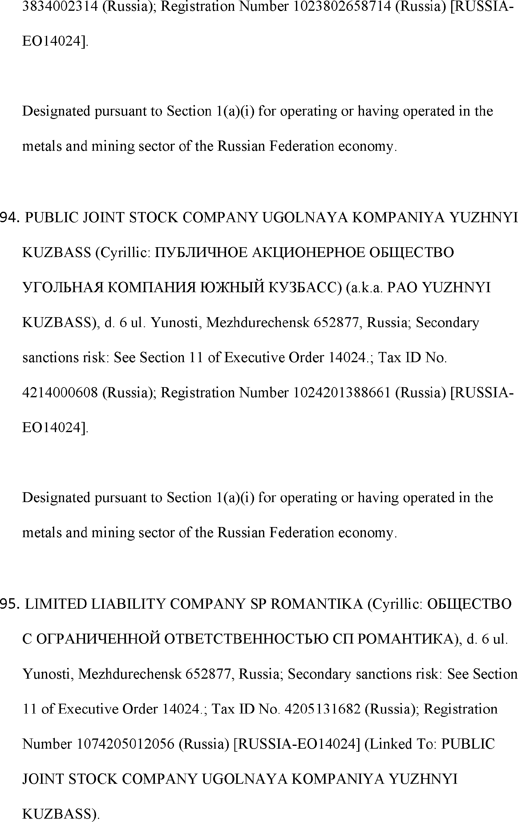 “Notice of Department of State Sanctions Actions Pursuant to the Executive Order Regarding Blocking Property With Respect to Specified Harmful Foreign Activities of the Government of the Russian Federation,” thefederalregister.org (February 21, 2025), https://thefederalregister.org/documents/2025-02899/notice-of-department-of-state-sanctions-actions-pursuant-to-the-executive-order-regarding-blocking-property-with-respect.