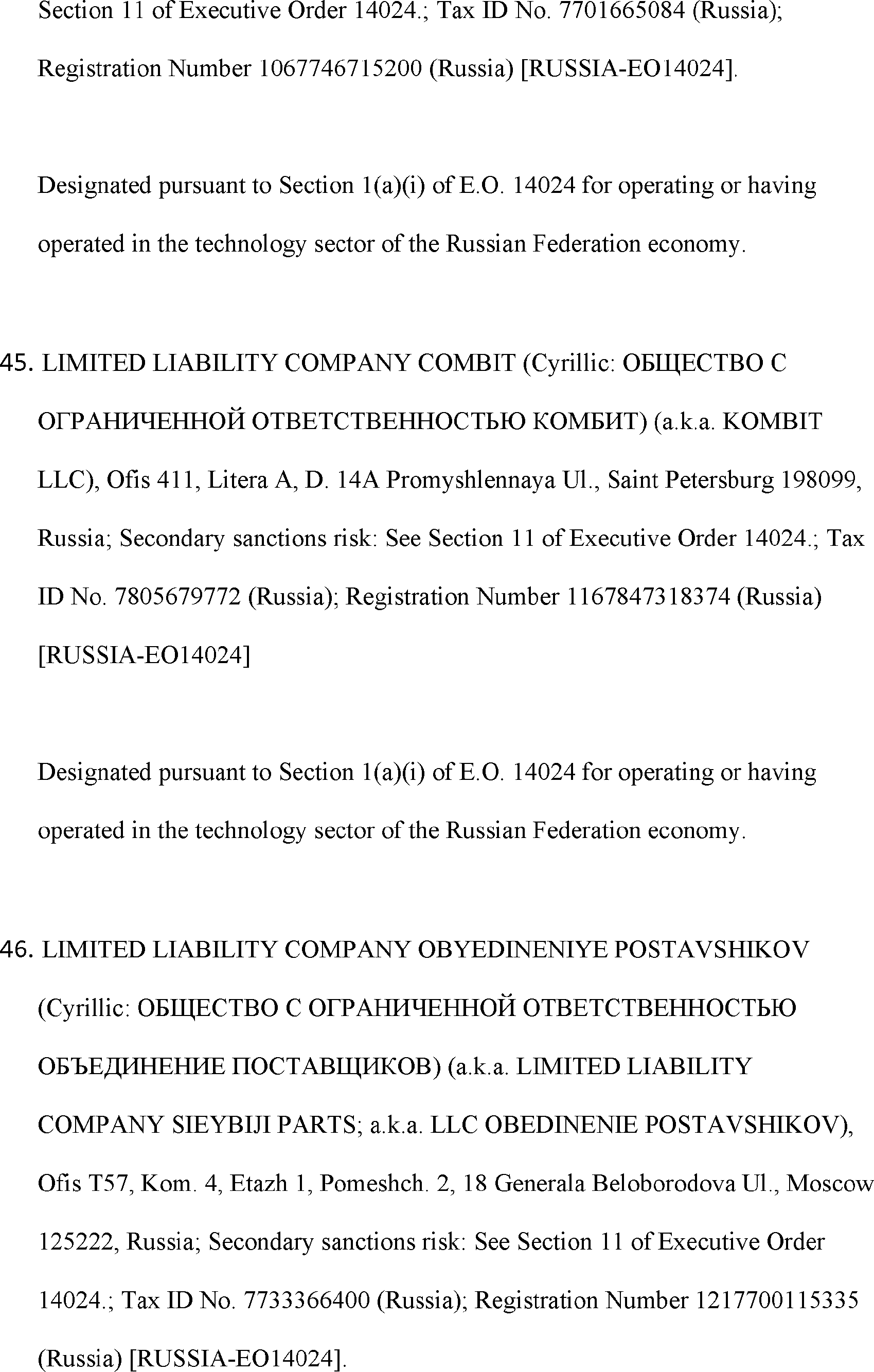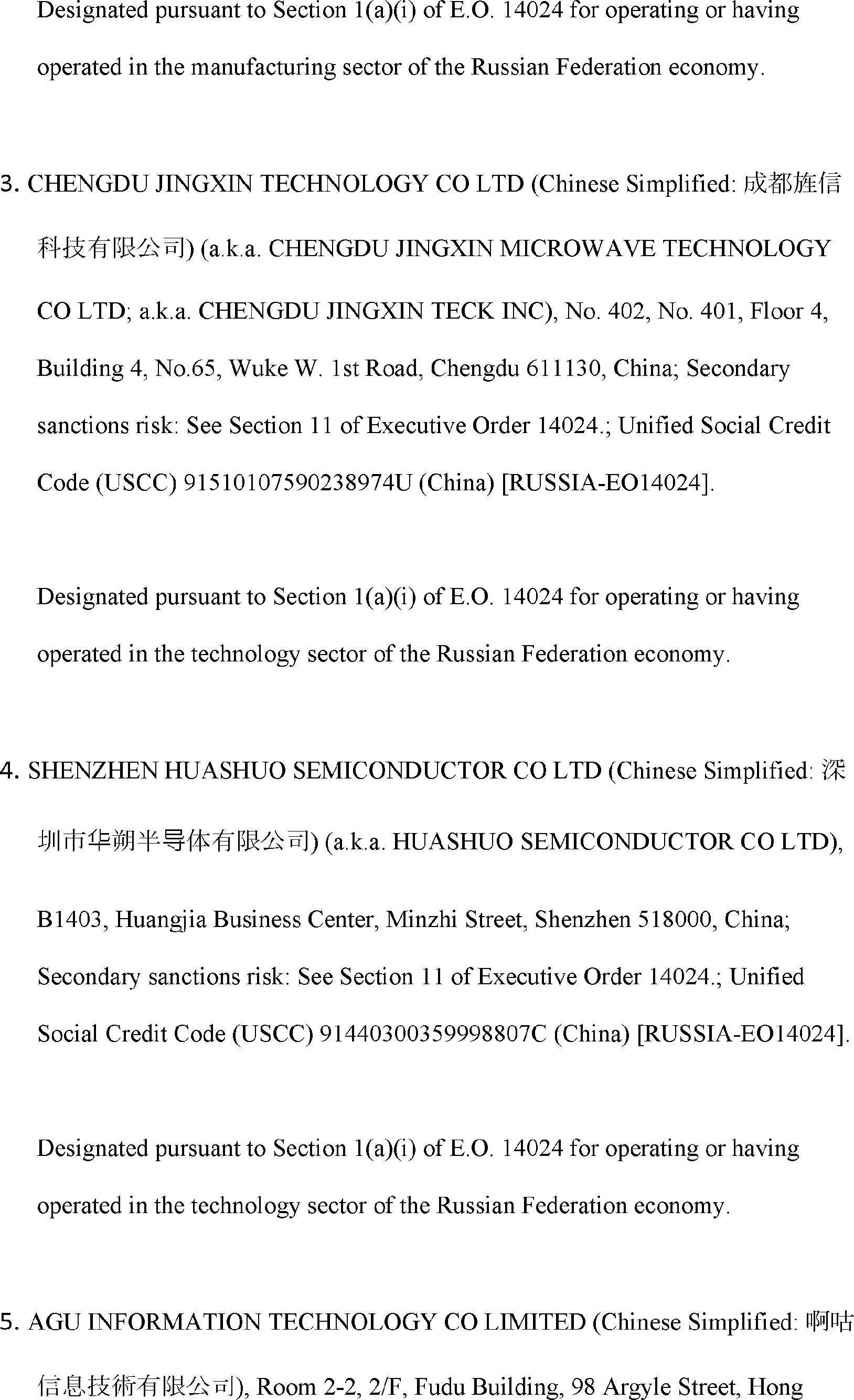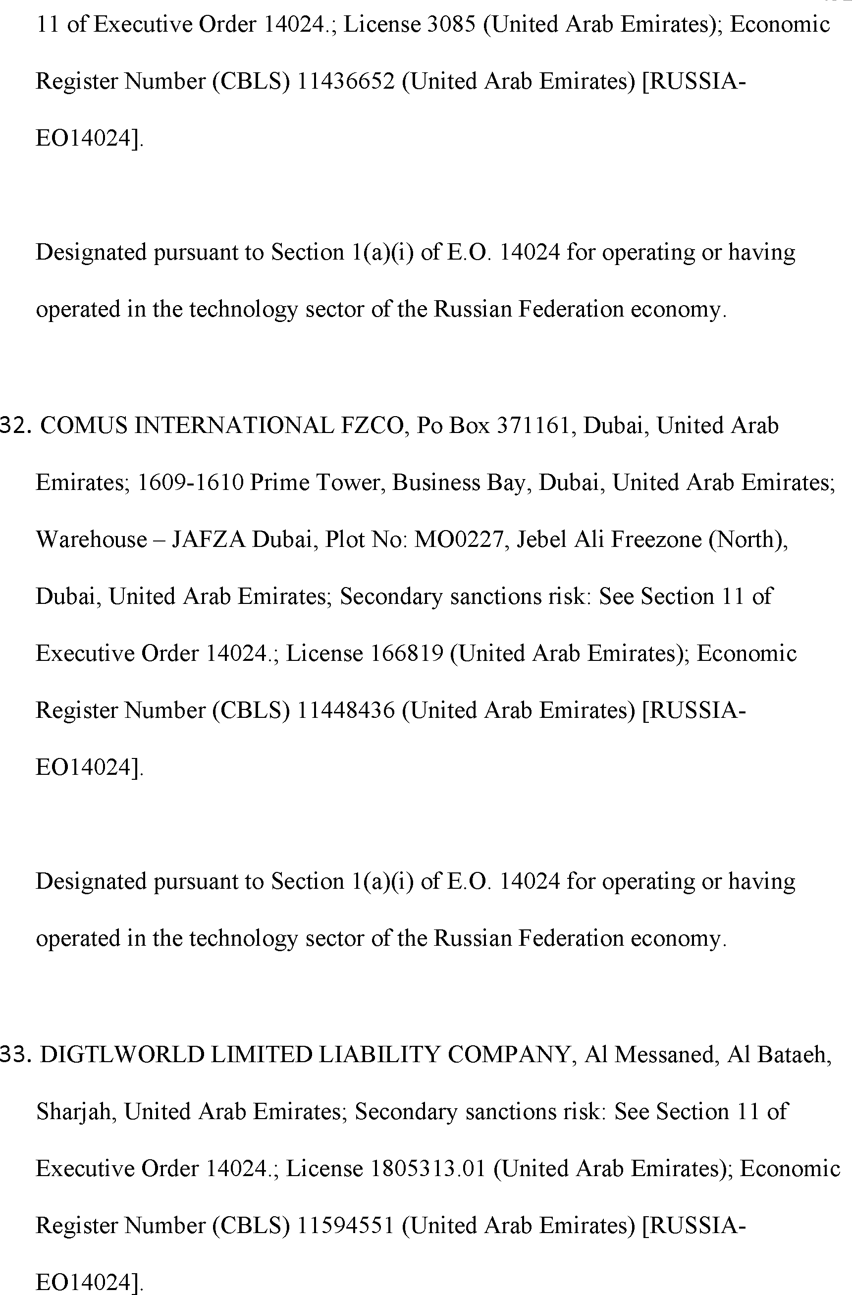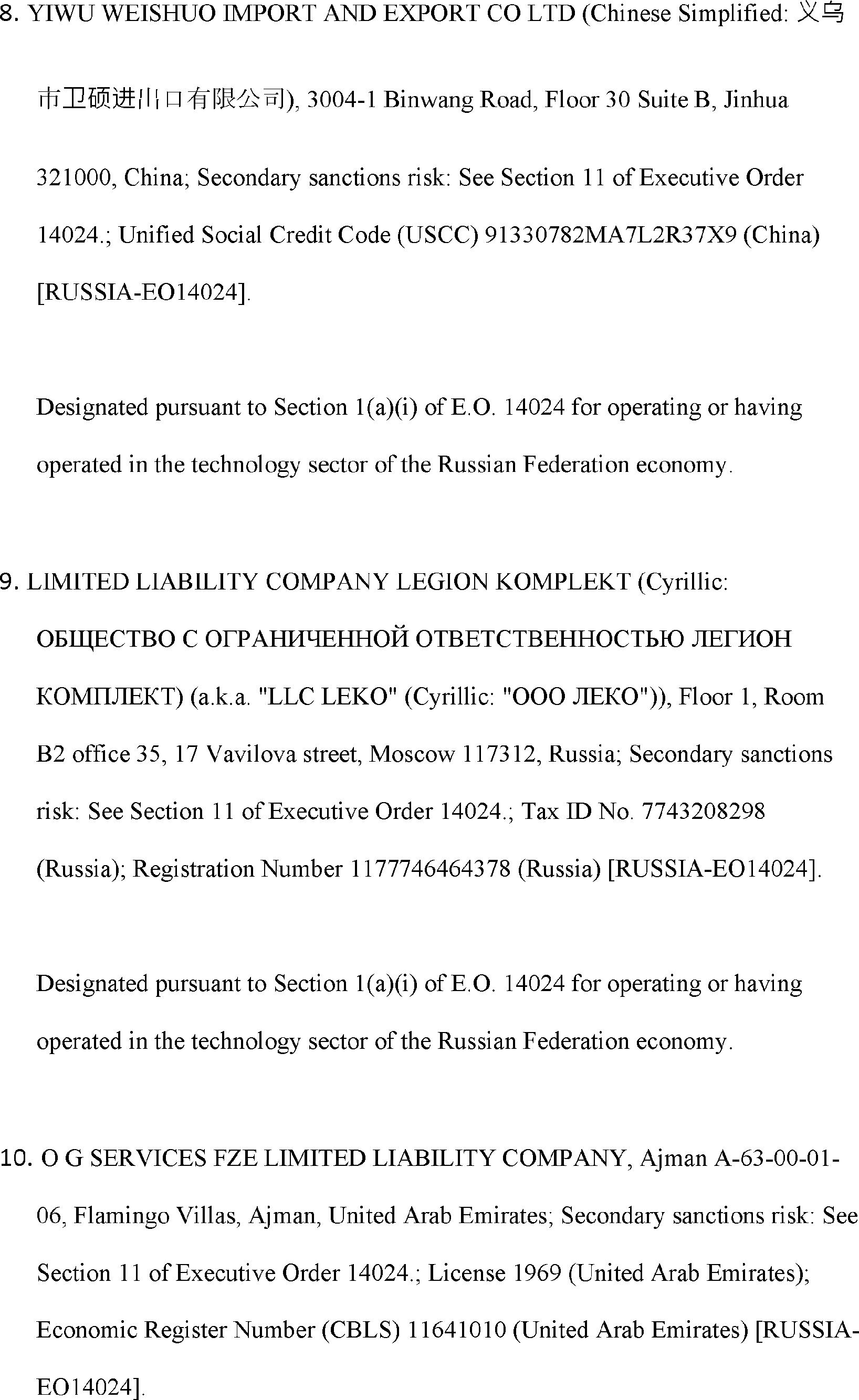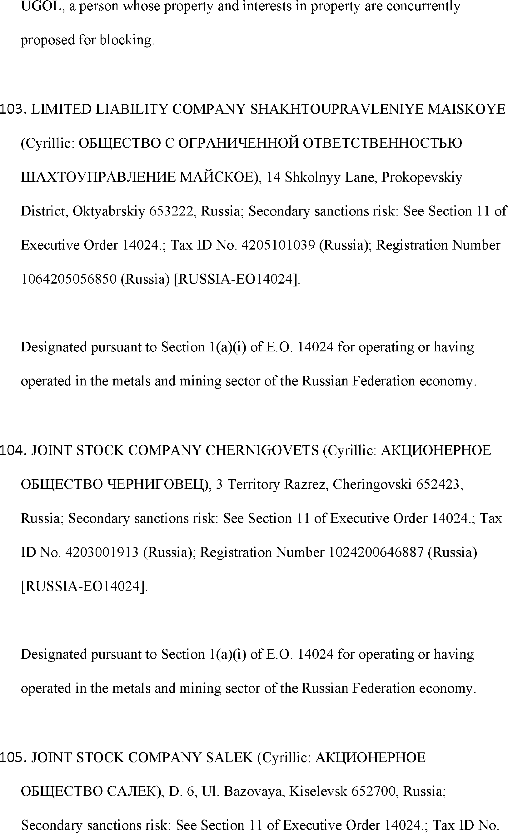 “Notice of Department of State Sanctions Actions Pursuant to the Executive Order Regarding Blocking Property With Respect to Specified Harmful Foreign Activities of the Government of the Russian Federation,” thefederalregister.org (February 21, 2025), https://thefederalregister.org/documents/2025-02899/notice-of-department-of-state-sanctions-actions-pursuant-to-the-executive-order-regarding-blocking-property-with-respect.