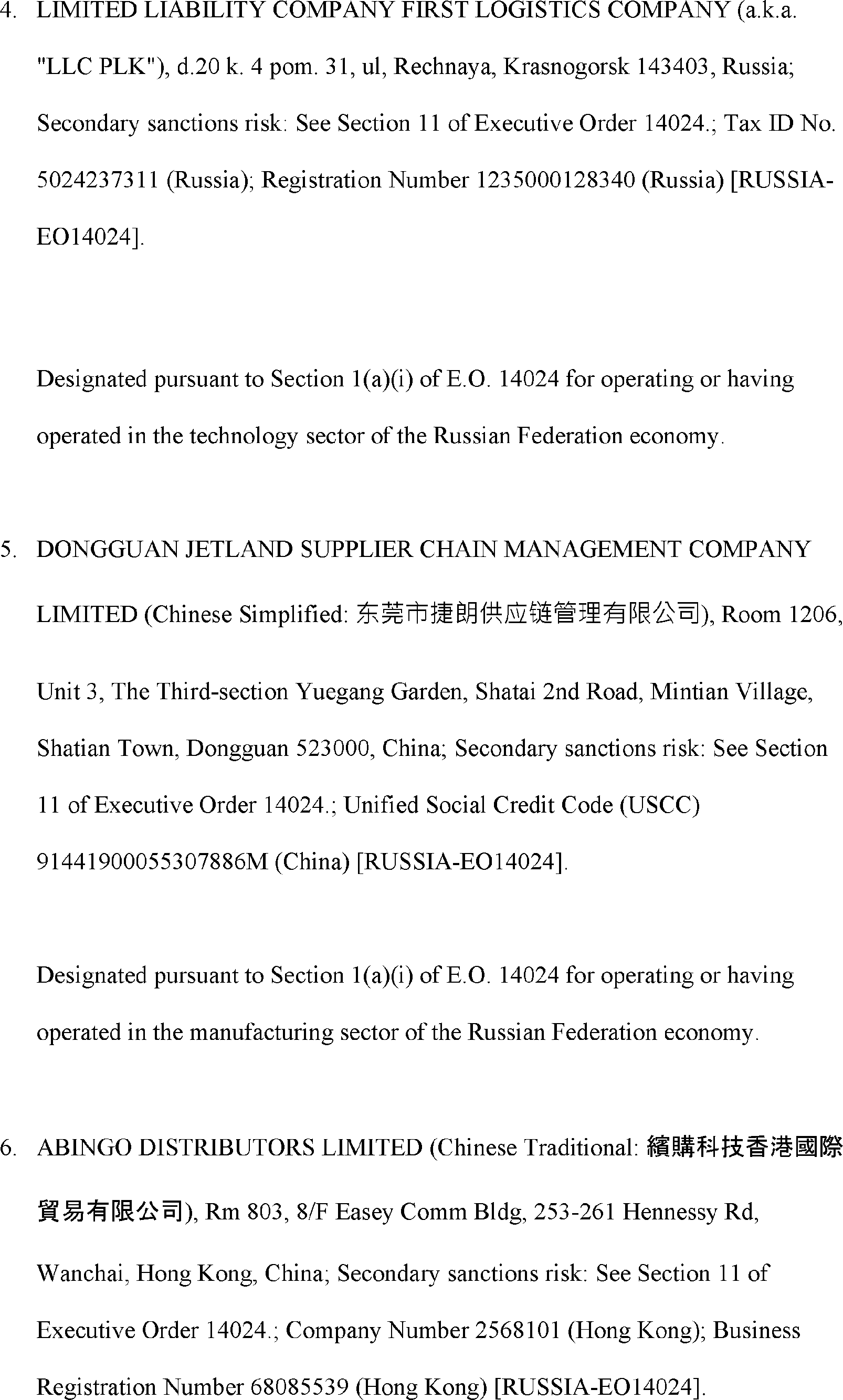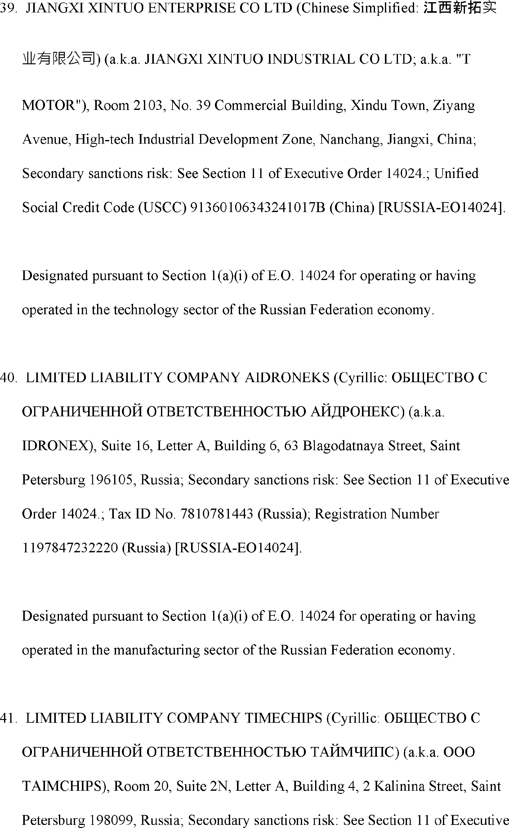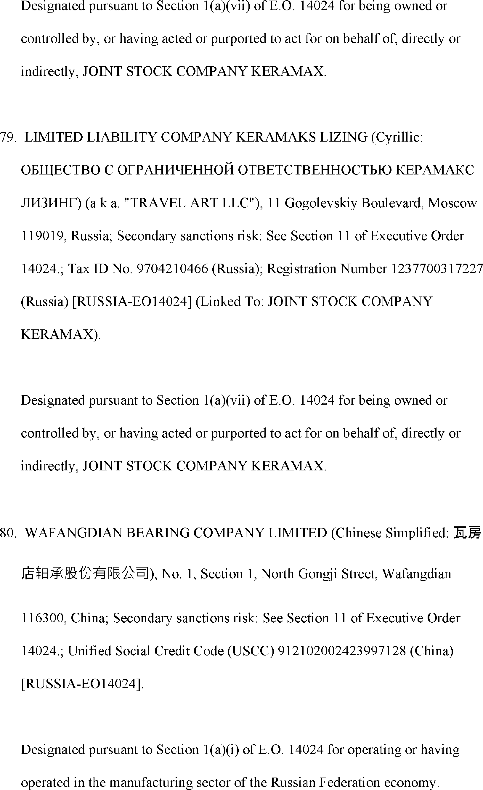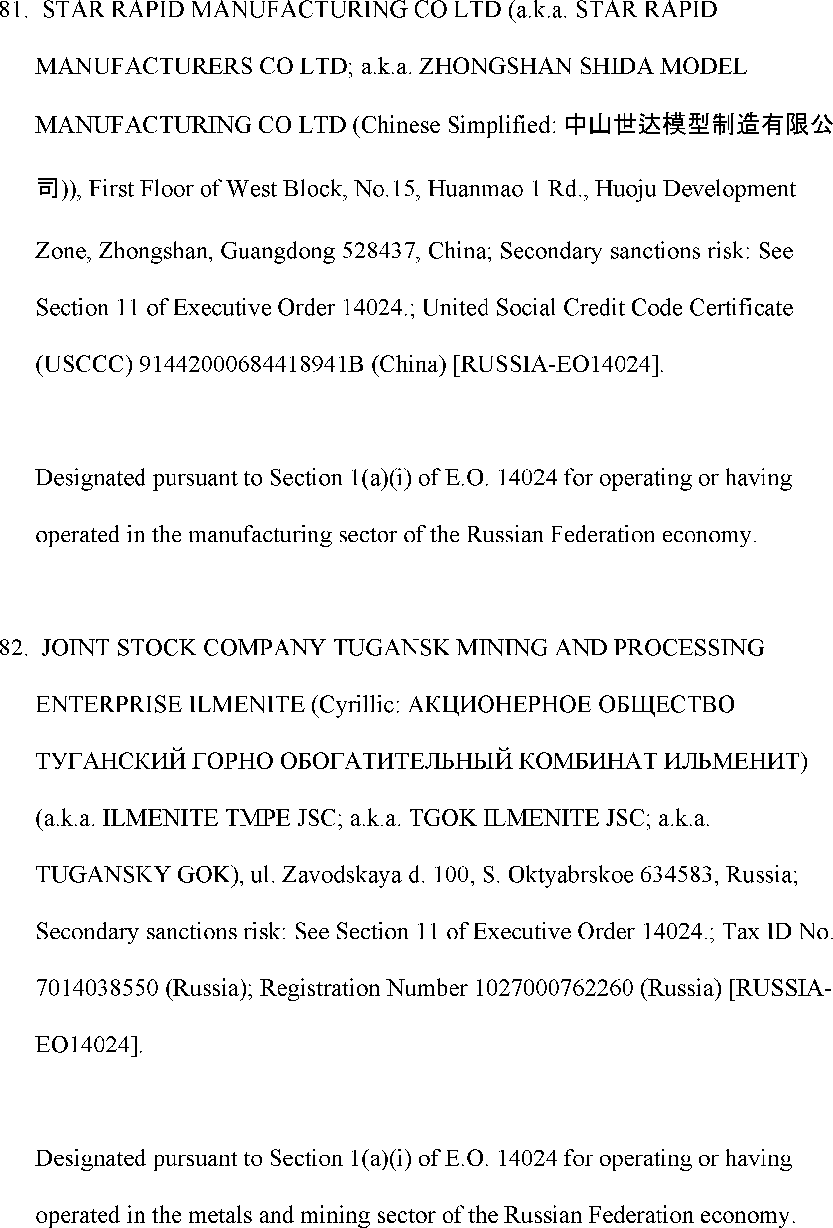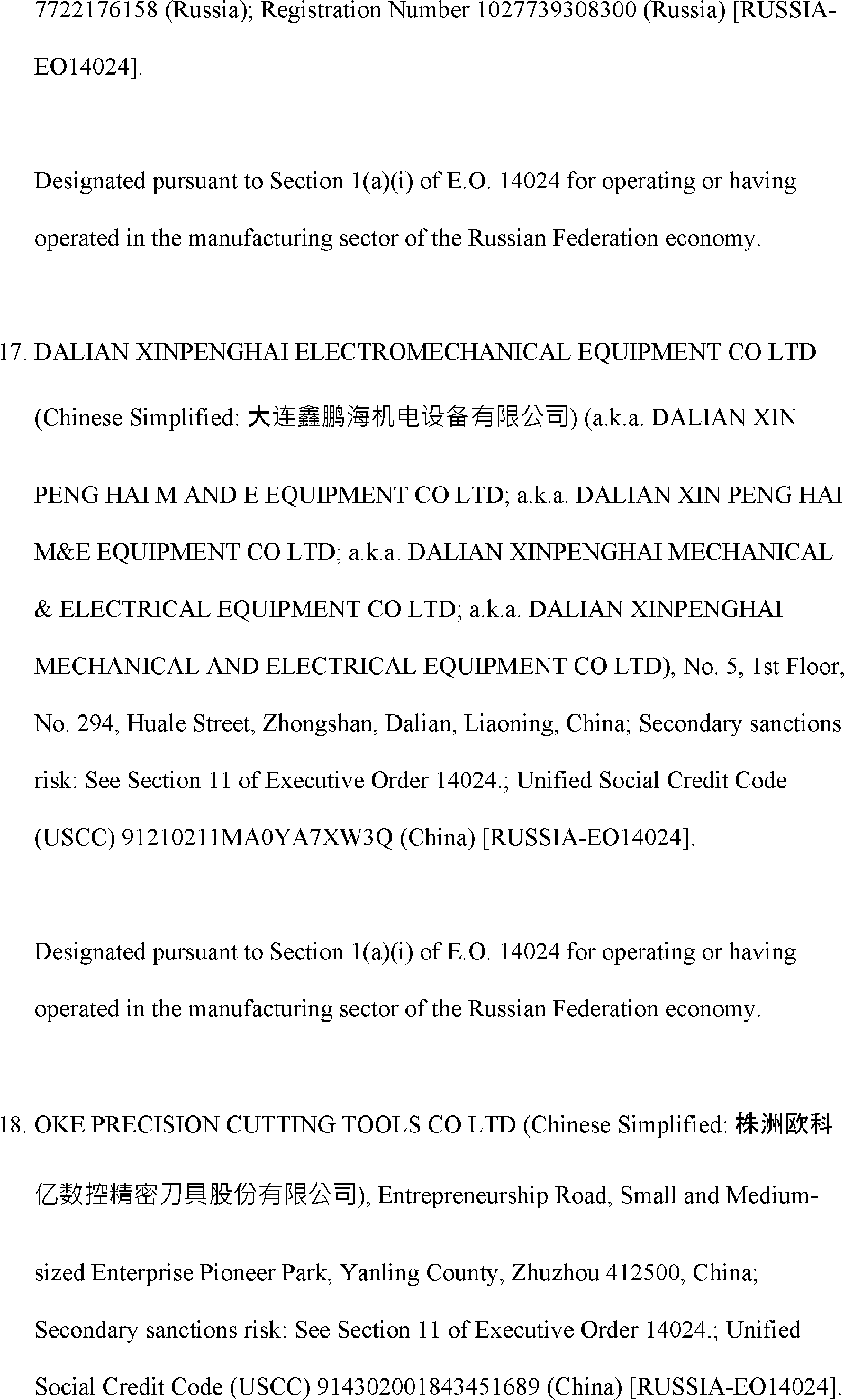 The Department of State is publishing the names of one or more persons that have been placed on the Department of Treasury's List of Specially Designated Nationals and Blocked Persons (SDN List) administered by the Office of Foreign Asset Control (OFAC) based on the Department of State's determination, in consultation with other departments, as appropriate, that one or more applicable legal criteria of the Executive Order regarding blocking property with respect to specified harmful foreign activities of the Government of the Russian Federation were satisfied. All property and interests in property subject to U.S. jurisdiction of these persons are blocked, and U.S. persons are generally prohibited from engaging in transactions with them.