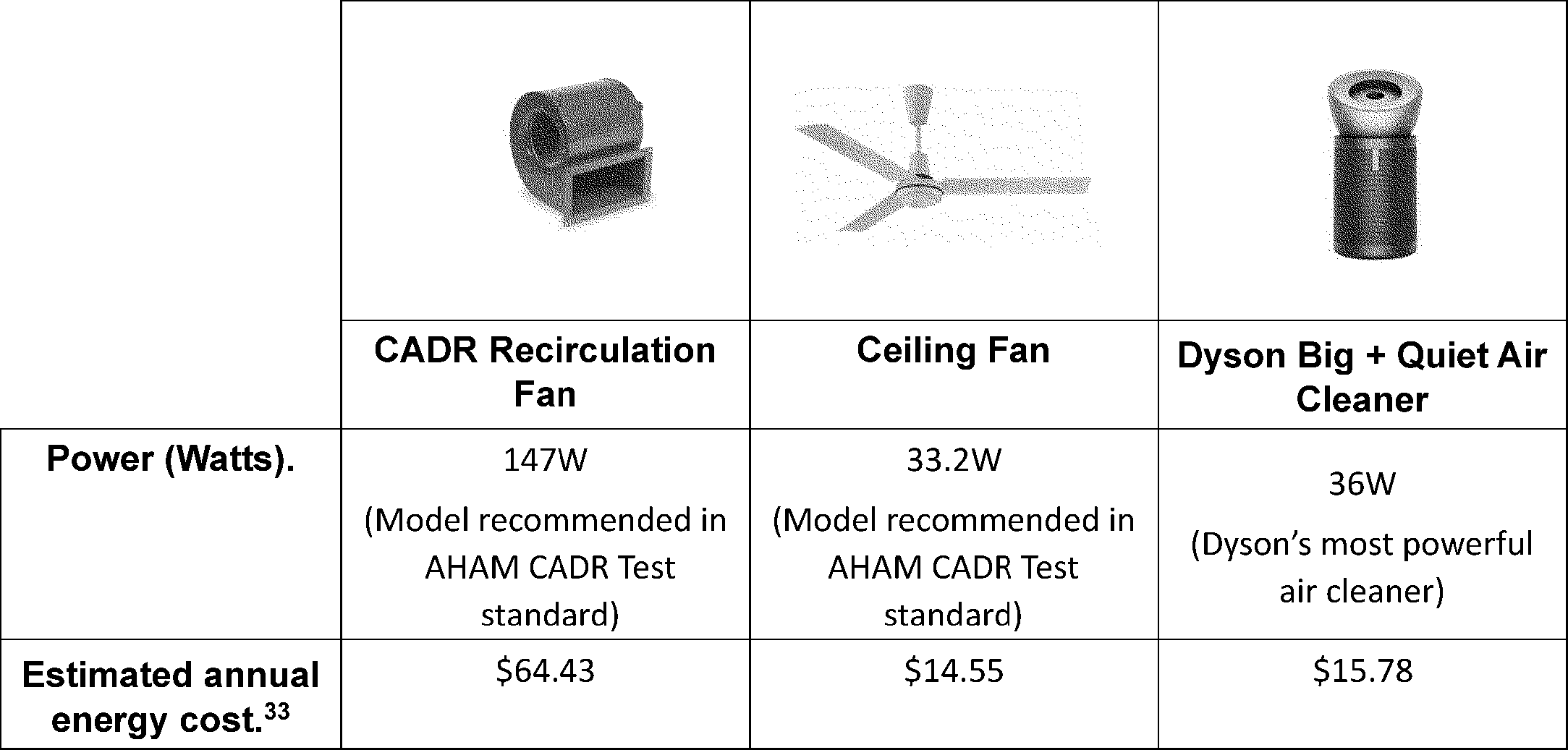By failing to account for real-world conditions and, in particular, providing undeserved “extra credit” to air cleaners without lateral whole-room air circulation fans, room size coverage claims and IEF scores calculated using CADRs measured by the AHAM CADR Test provide insufficient and inaccurate differentiation between the performance of air cleaners that do have such technology and the performance of air cleaners that do not have such technology. Likewise, by not accounting for features like automatic sensor-response technologies that enable certain air cleaners to be more energy efficient, room size coverage claims and IEF scores calculated using the AHAM CADR Test prevent brands from competing for consumers based on those consumer- and environmentally-friendly technologies. This perverse situation not only leads to frustration of a consumers' ability to choose the right air cleaner for their homes, but also reduces manufacturers' incentive to continue to innovate to create better products that enhance consumer welfare. Why invest in innovation if, under the Room Size Coverage Rule and IEF Rule, air cleaners without performance and energy efficiency-improving technologies appear to consumers to be equally effective and efficient as those products whose manufacturers have invested in researching and developing improved technologies?