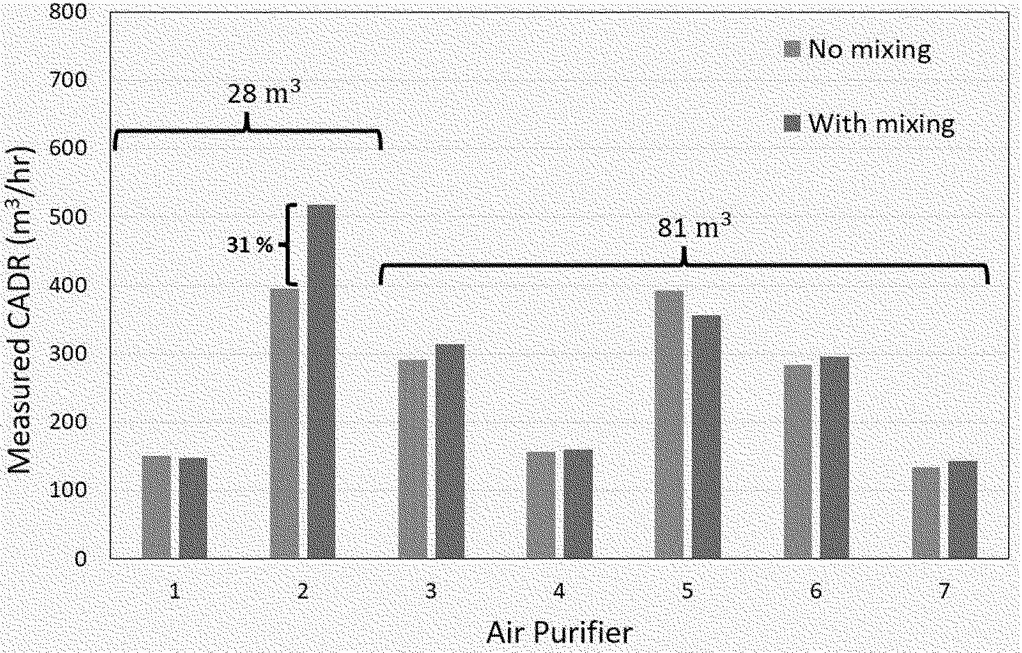 , with and without mixing. For some products the use of a recirculation fan (mixing) resulted in minimal changes in CADR, while for other products it resulted in an increase of CADR by up to 32%.