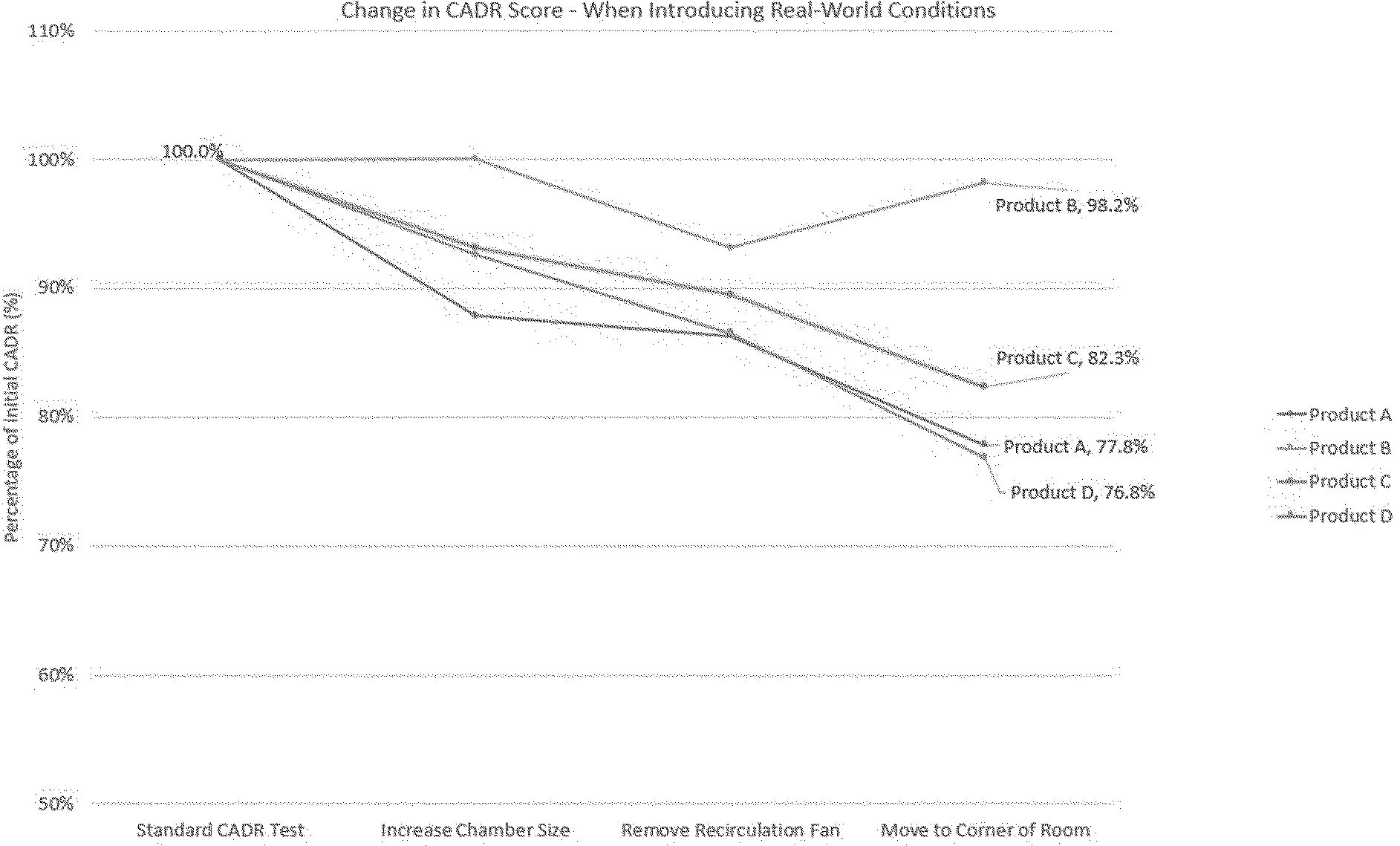 (noting that “CADR test chambers are not representative of actual room sizes, and therefore CADR ratings do not reflect actual usage under real-world conditions.”).
