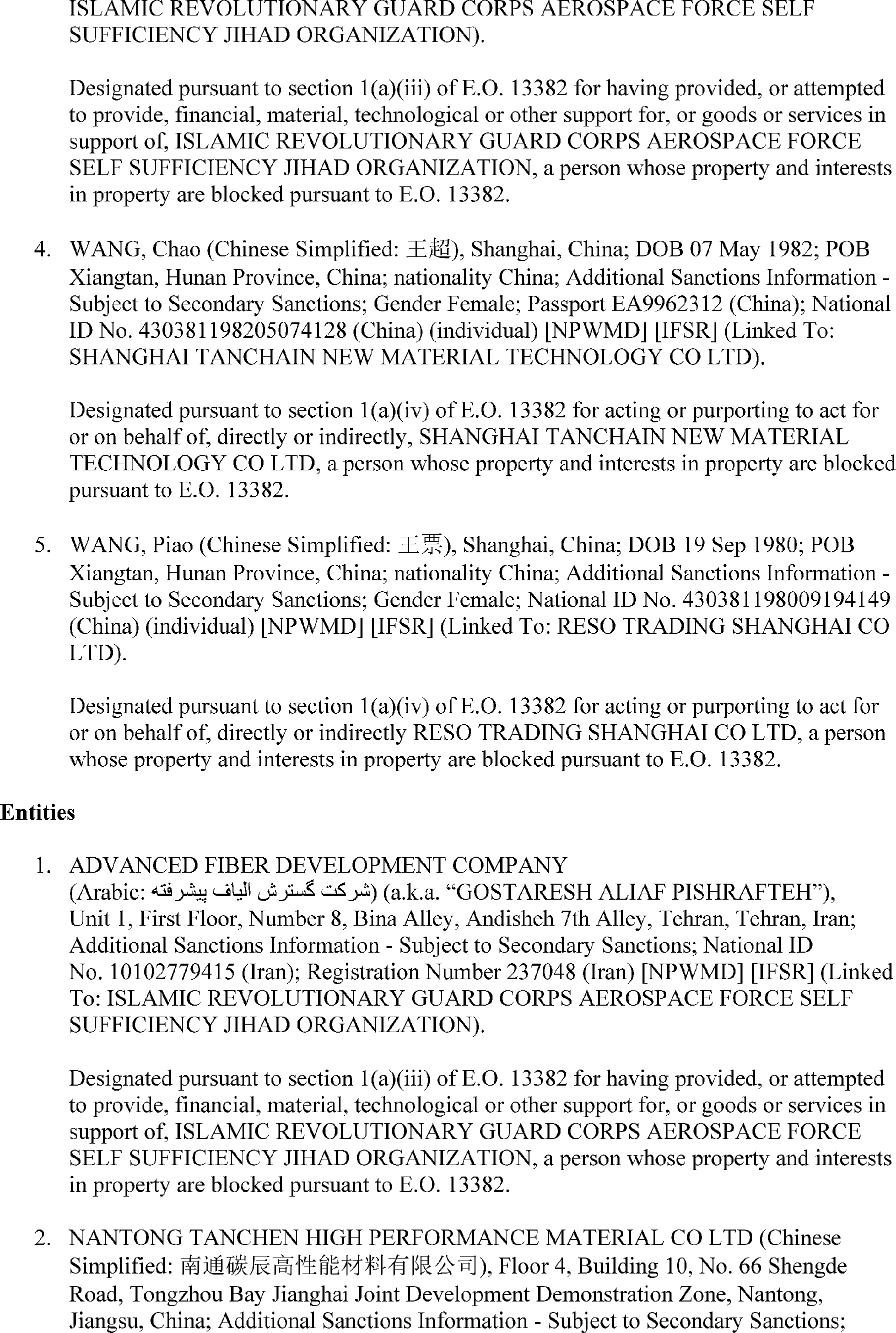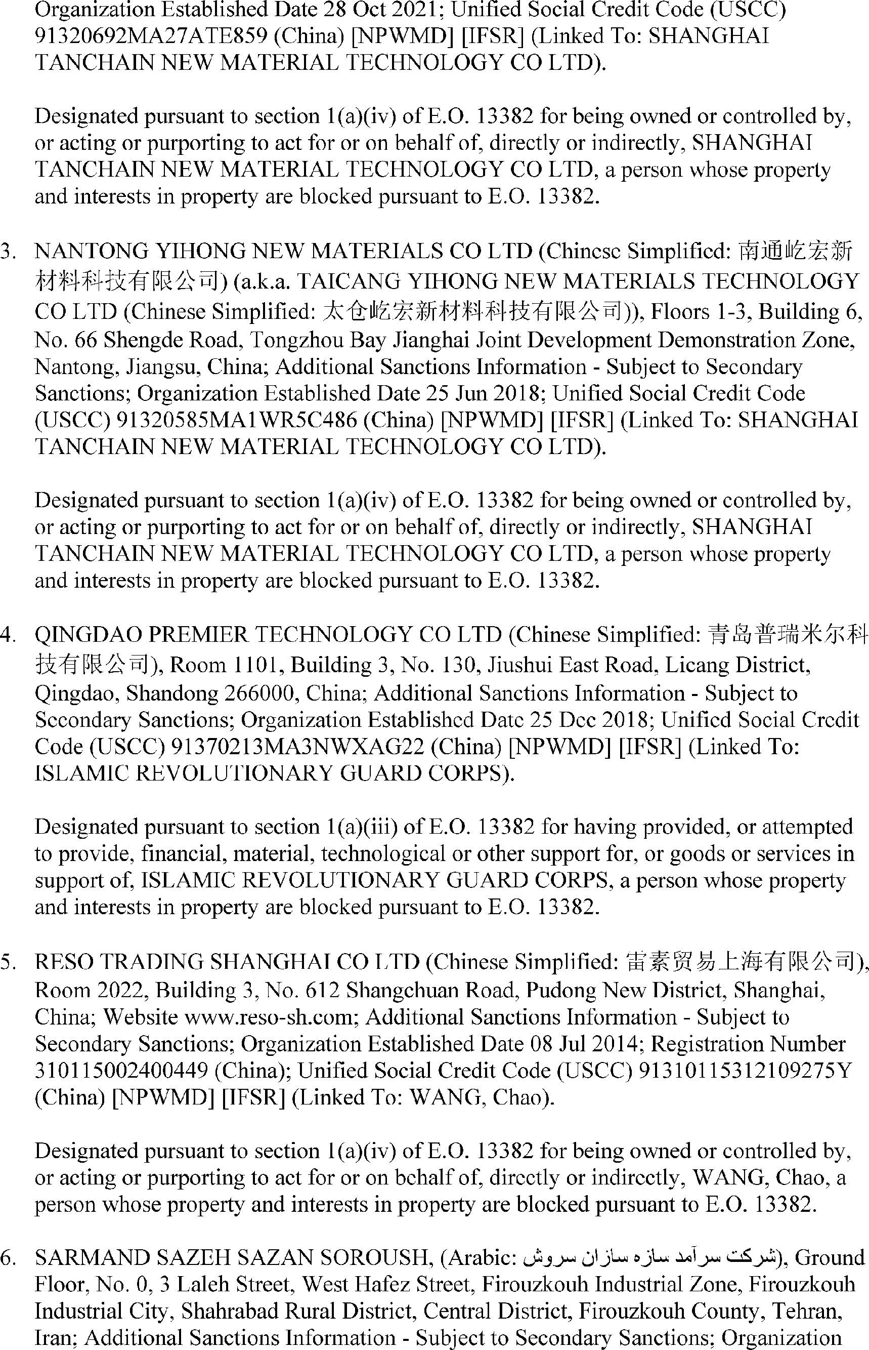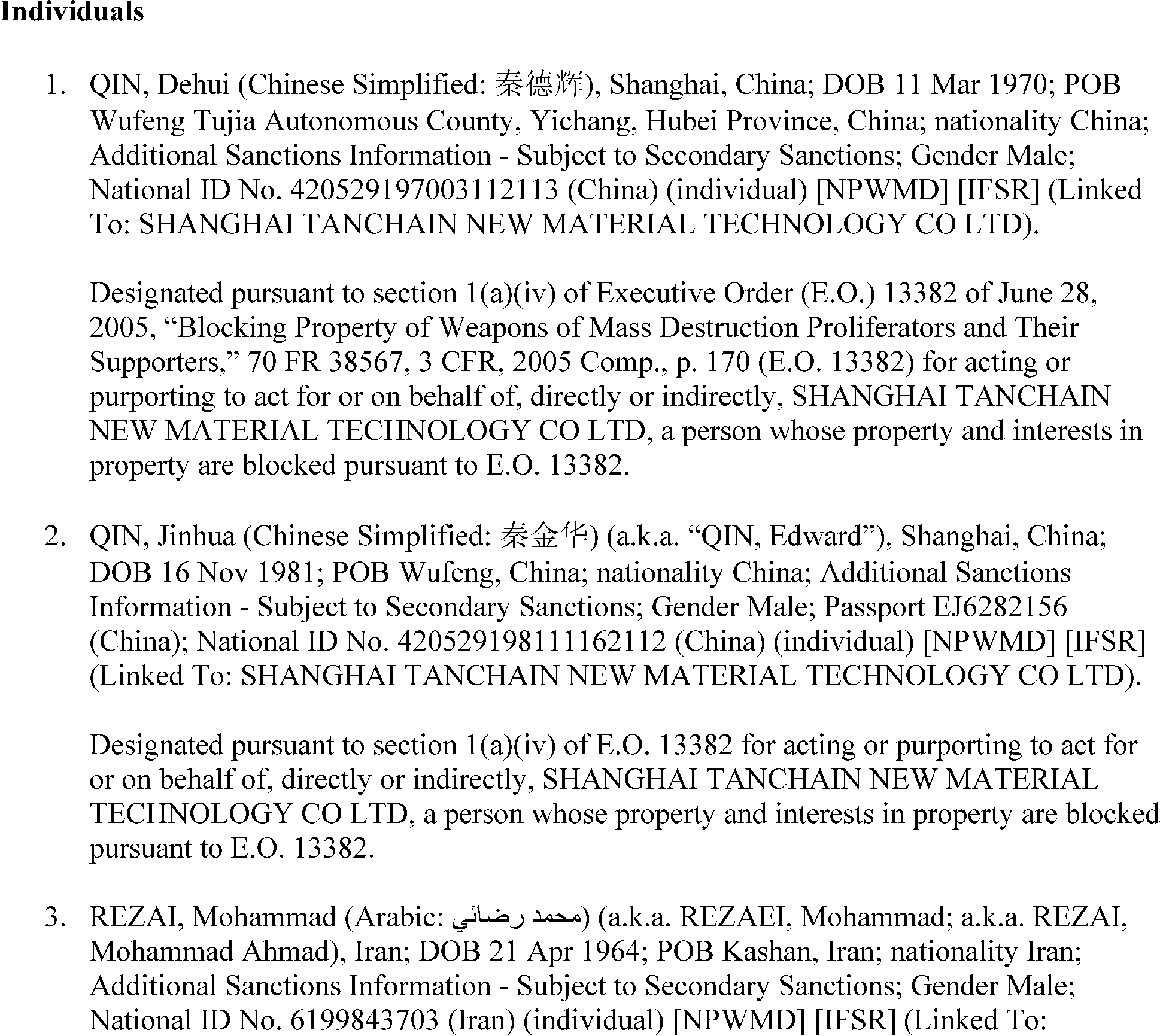 The U.S. Department of the Treasury's Office of Foreign Assets Control (OFAC) is publishing the names of one or more persons that have been placed on OFAC's Specially Designated Nationals and Blocked Persons List (SDN List) based on OFAC's determination that one or more applicable legal criteria were satisfied. Additionally, OFAC is providing an updated Federal Register notice for three persons previously designated by OFAC. All property and interests in property subject to U.S. jurisdiction of these persons are blocked, and U.S. persons are generally prohibited from engaging in transactions with them.