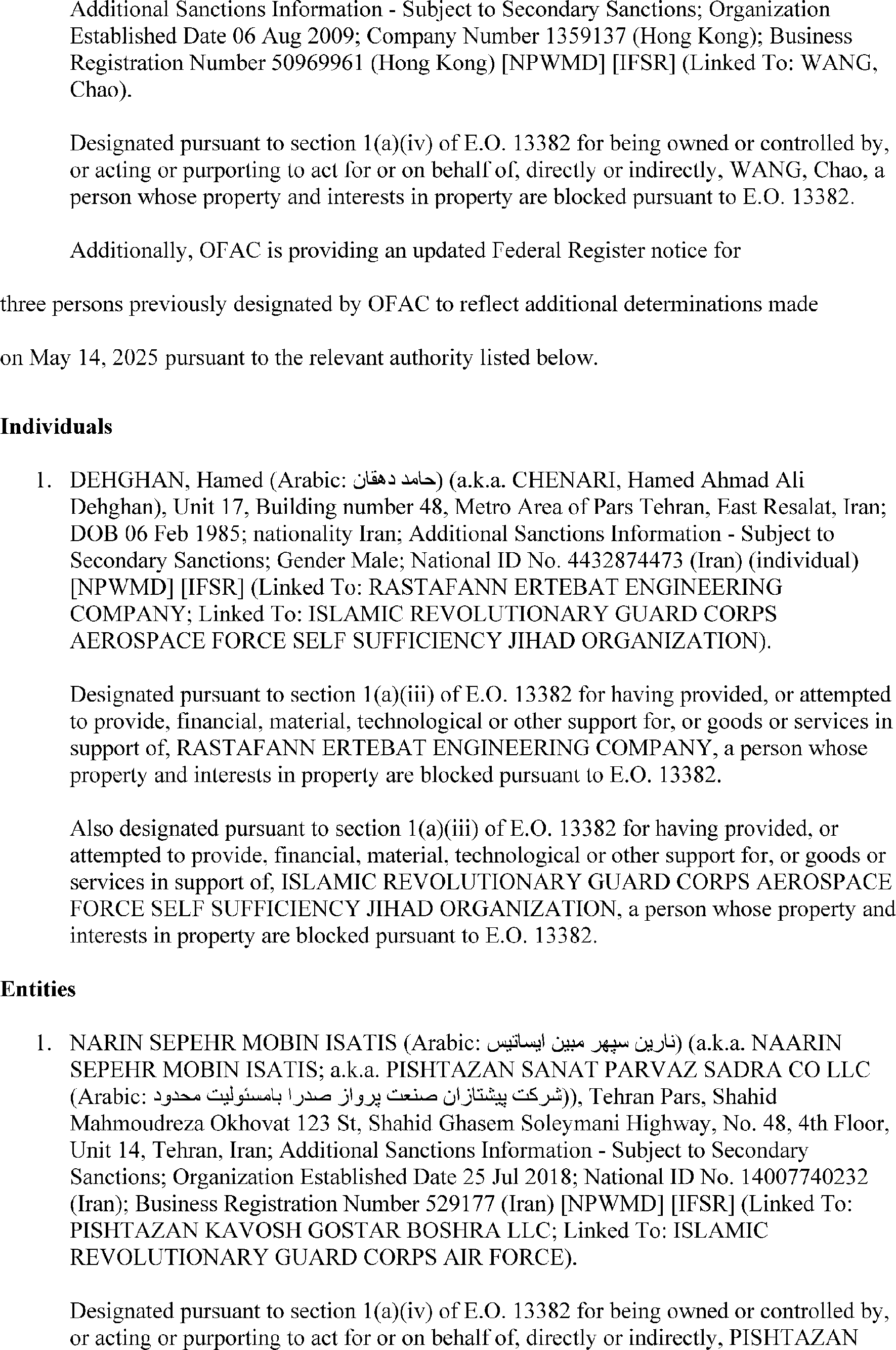 This action was issued on May 14, 2025. See SUPPLEMENTARY INFORMATION for relevant dates.