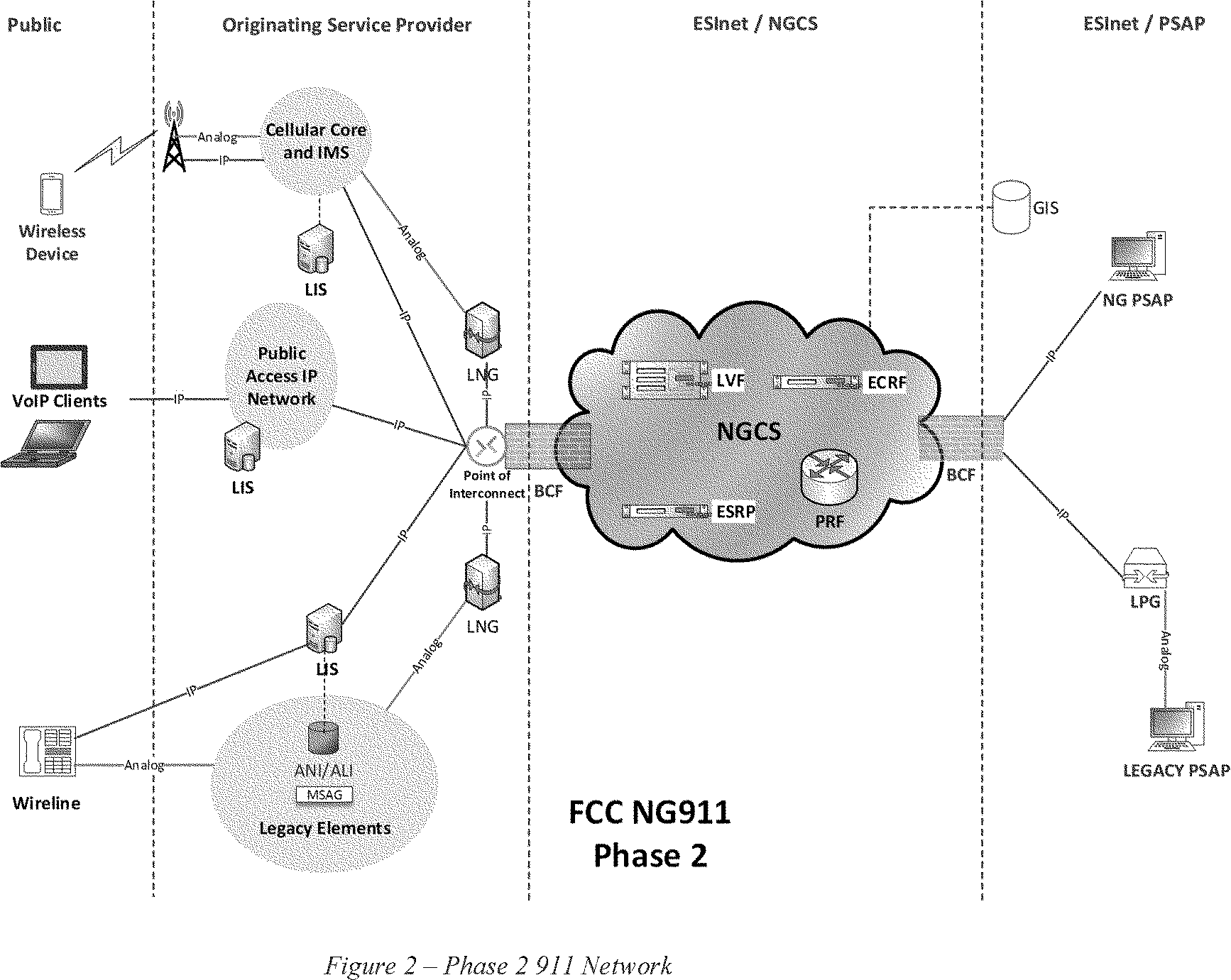 ○ We also propose to expand the CSP definition to encompass the following types of providers of critical connectivity in the NG911 environment: (1) operators of Location Information Servers (LISs) or equivalent IP 911 location databases; (2) operators of Legacy Network Gateways (LNGs); (3) operators of interstate Major Transport Facilities that meet or exceed Optical Carrier 3 (OC3) capacity and carry 911 traffic from multiple OSPs for ultimate delivery to NG911 Delivery Points or ESInets; (4) operators of IP Traffic Aggregation Facilities that carry segregated 911 traffic from multiple OSPs towards ultimate transmission to an NG911 Delivery Point or ESInet; and (5) operators of interstate interconnecting facilities between ESInets.[5]