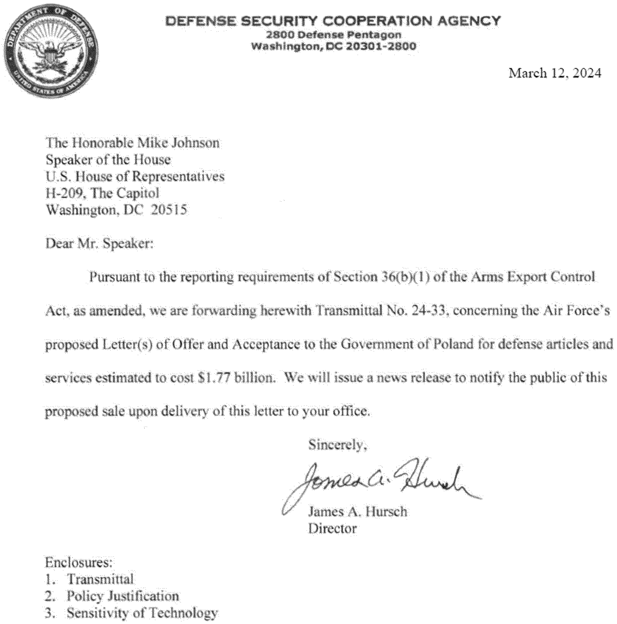 Implementation of this proposed sale will not require the assignment of any additional U.S. Government or contractor representatives to the Government of Poland.