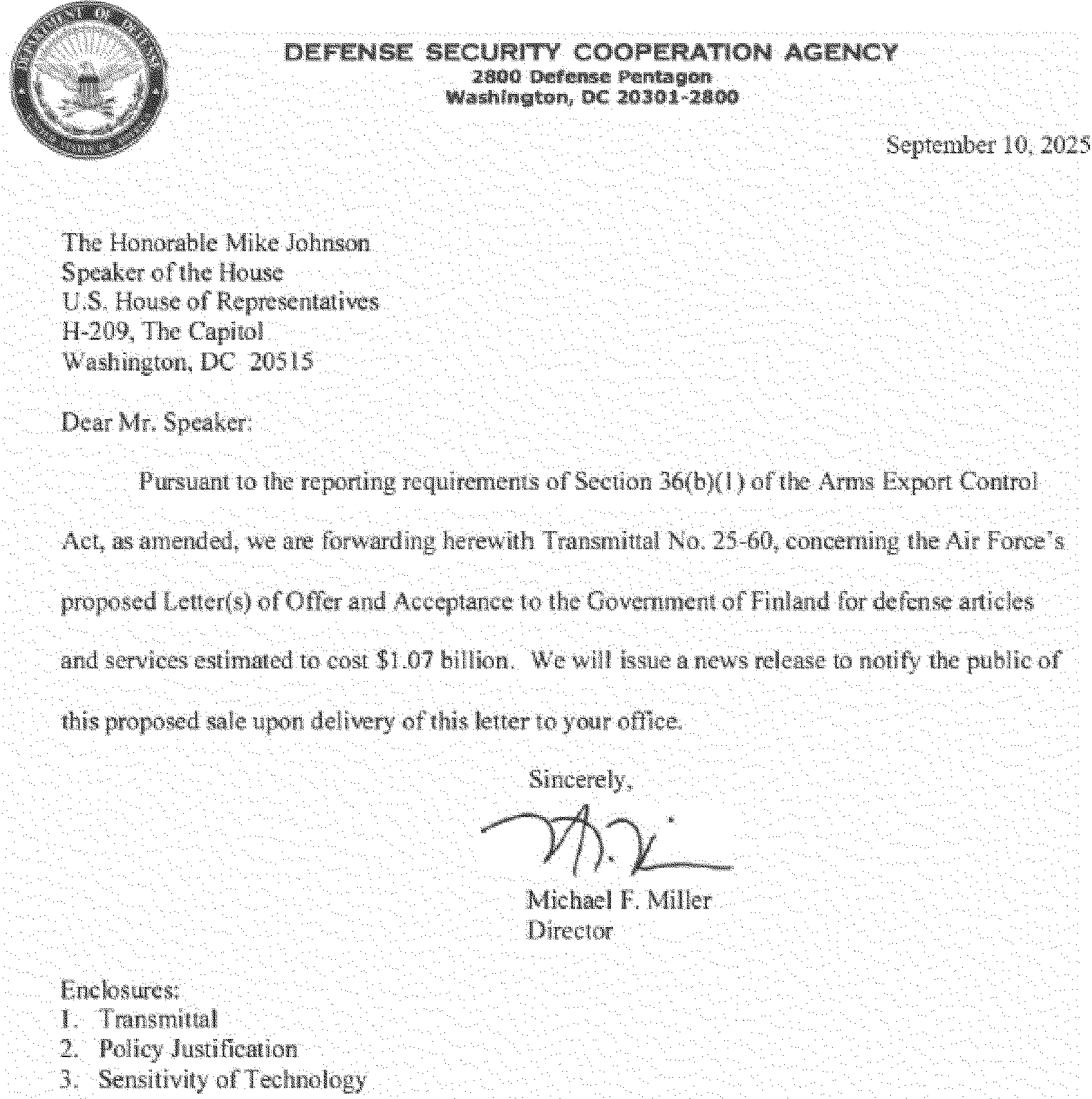 This 36(b) arms sales notification is published to fulfill the requirements of section 155 of Public Law 104-164 dated July 21, 1996. The following is a copy of a letter to the Speaker of the House of Representatives with attached Transmittal 25-60, Policy Justification, and Sensitivity of Technology.