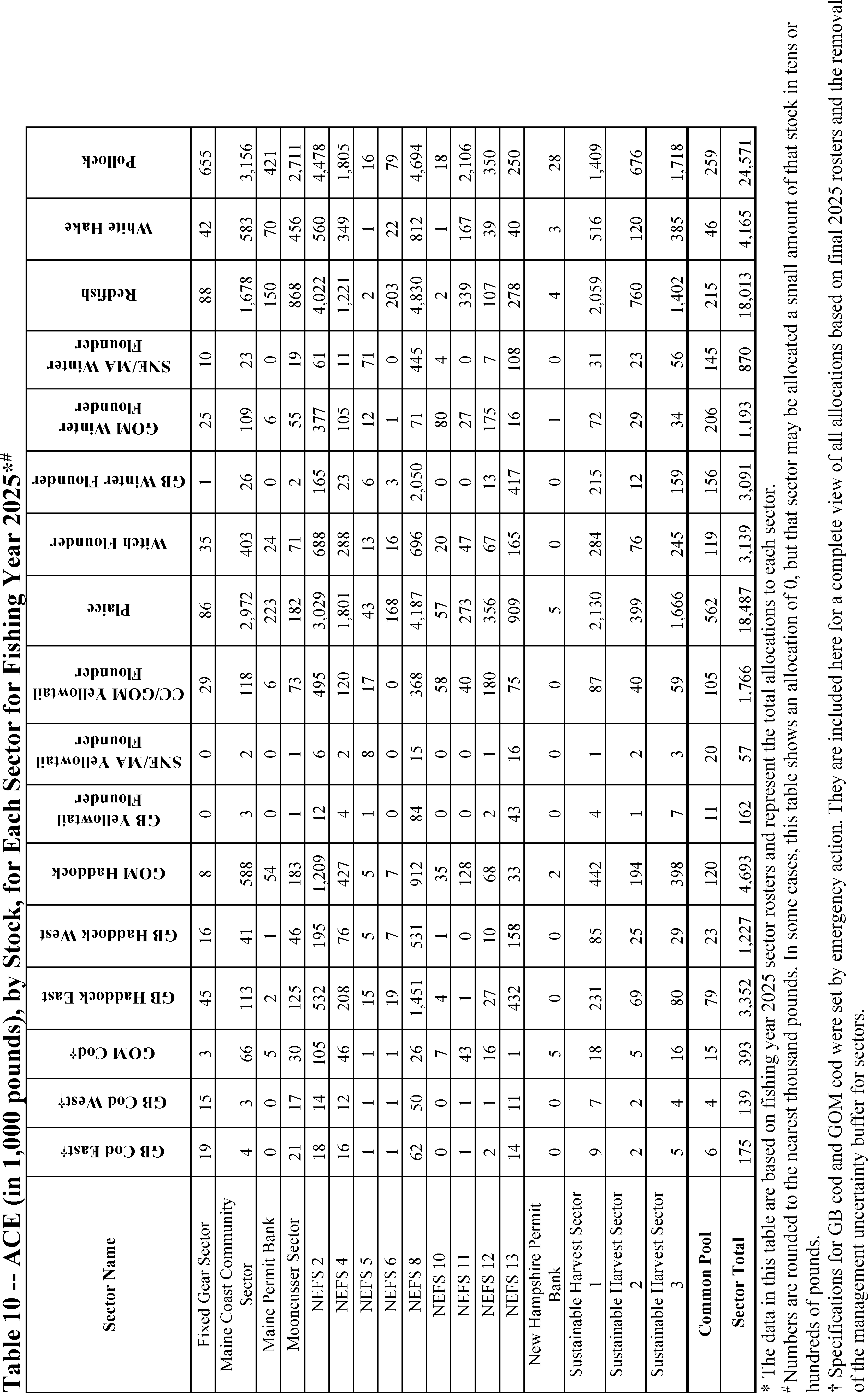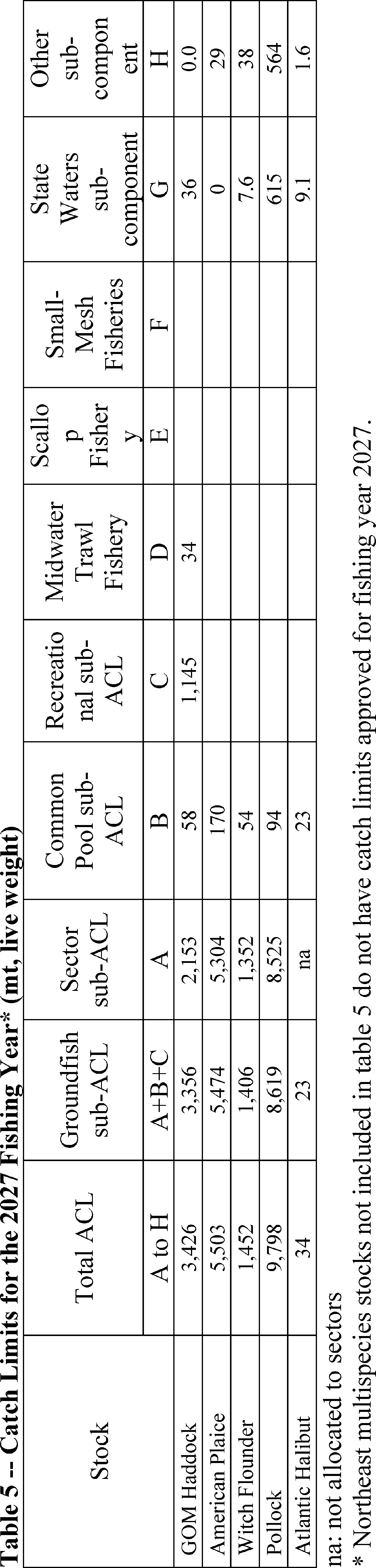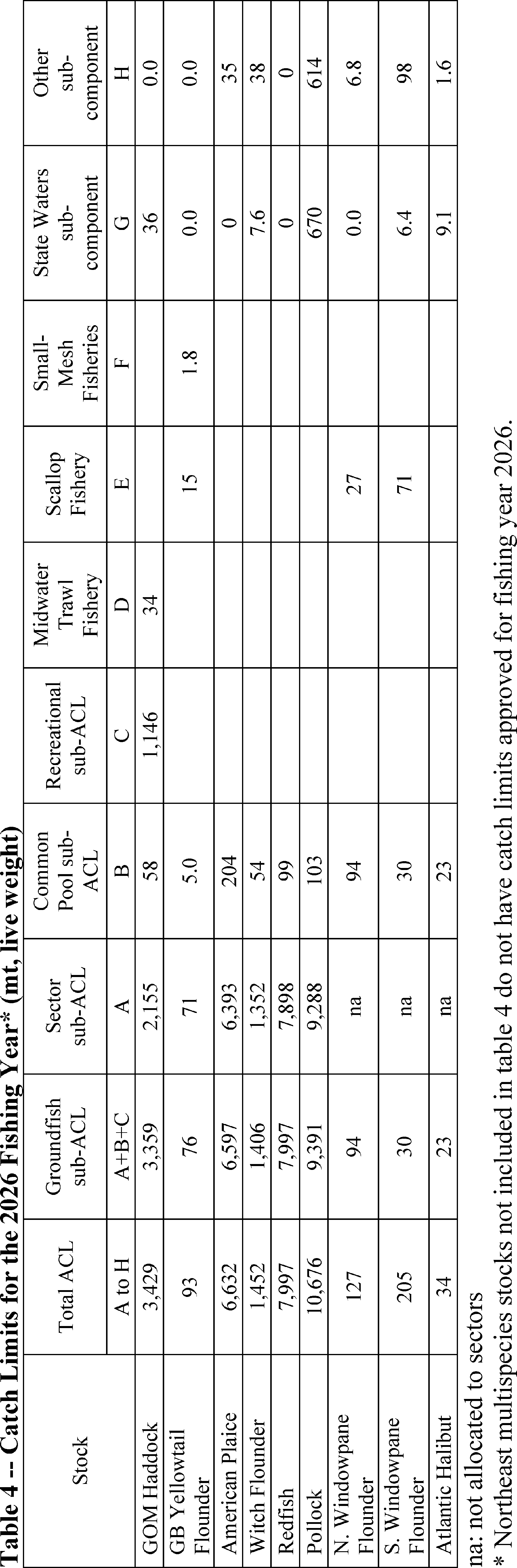 Atlantic halibut, ocean pout, windowpane flounder, and Atlantic wolffish) that is available to the commercial NE multispecies fishery shall be allocated entirely to the common pool, and catch from sector and common pool vessels shall be attributed to this allocation. Unless otherwise specified in paragraph (a)(5) of this section, regulated species or ocean pout catch by common pool and sector vessels shall be deducted from the sub-ACL/ACE allocated pursuant to this paragraph (a)(4)(iii)(I)(