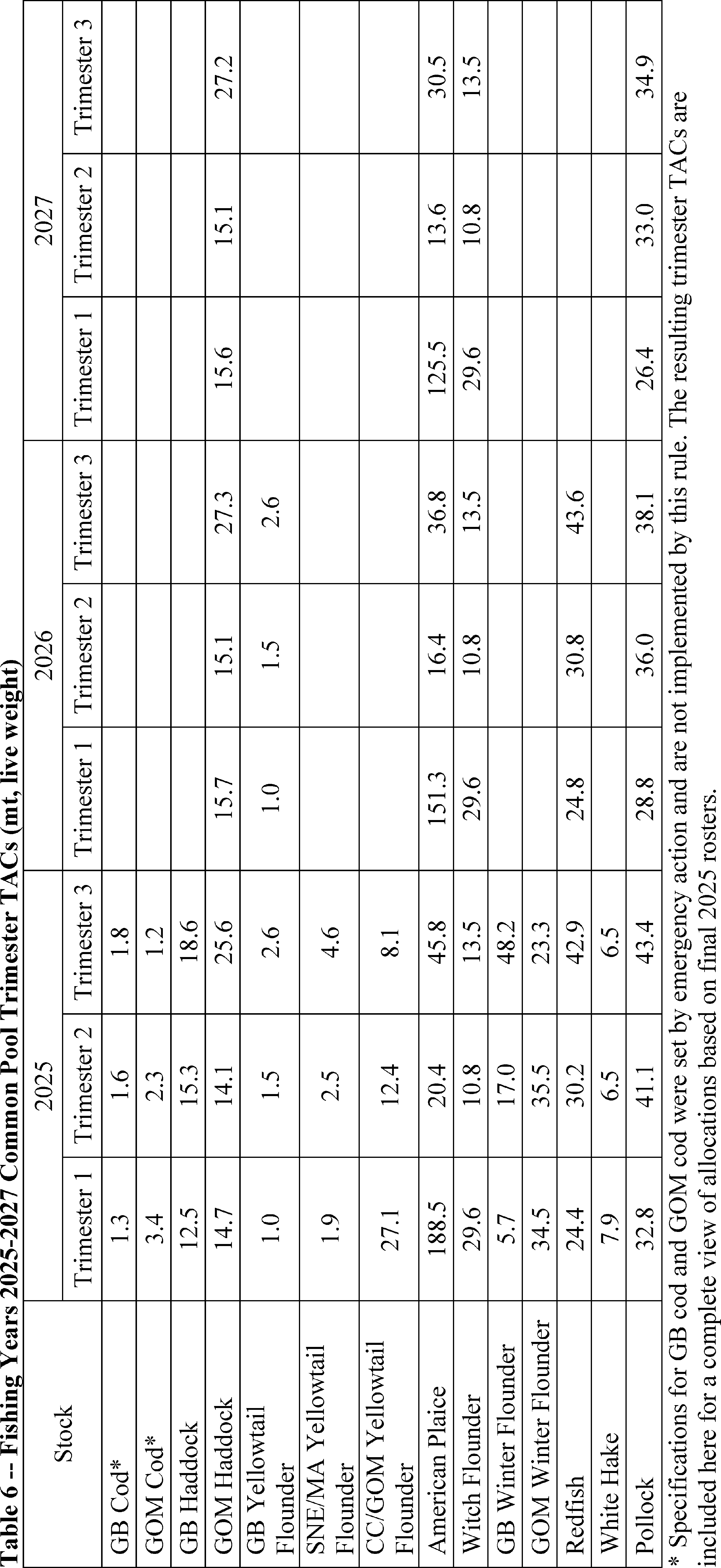 Fishing Years 2025 Shared United States/Canada Quotas