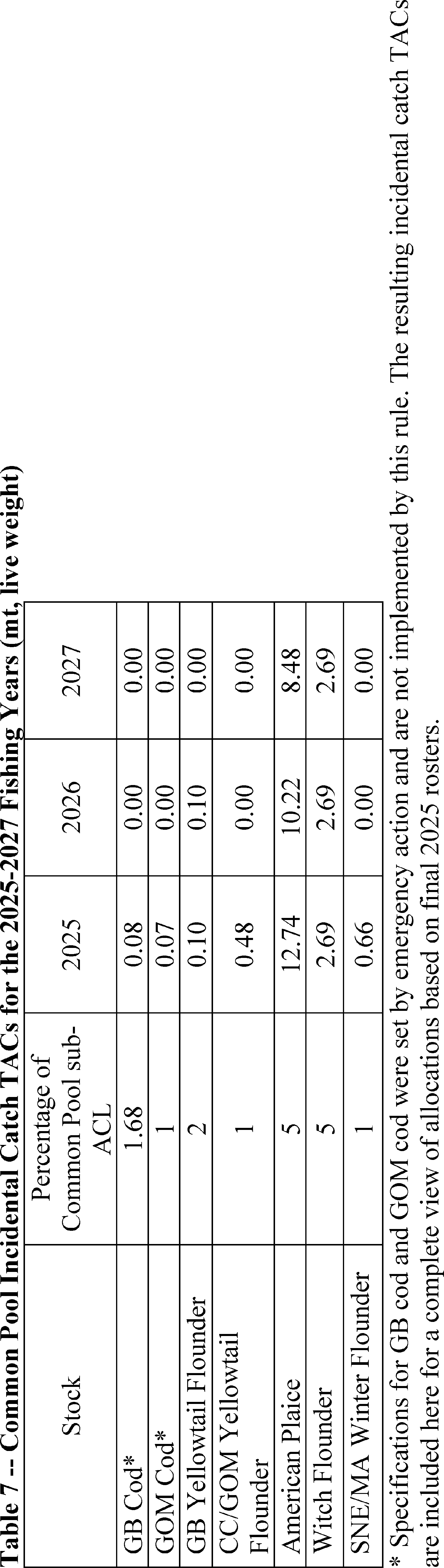Updates the common pool possession and trip limits for stocks to reflect potential fishing year 2025 limits; and,