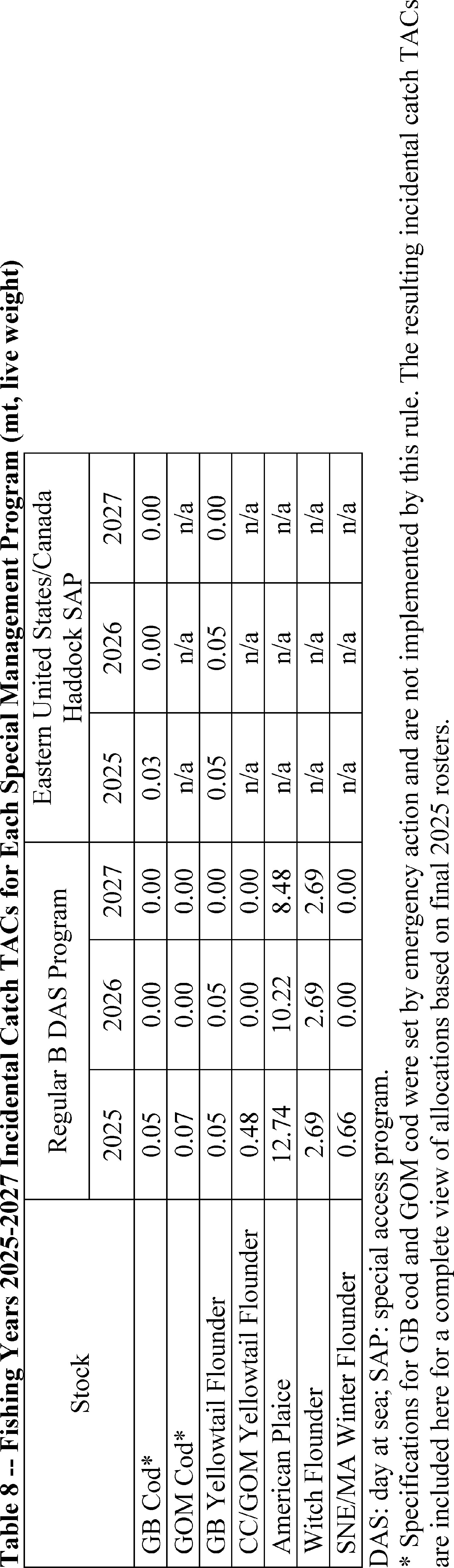 Table 1—2025 Fishing Year United States/Canada Quotas (metric tons (