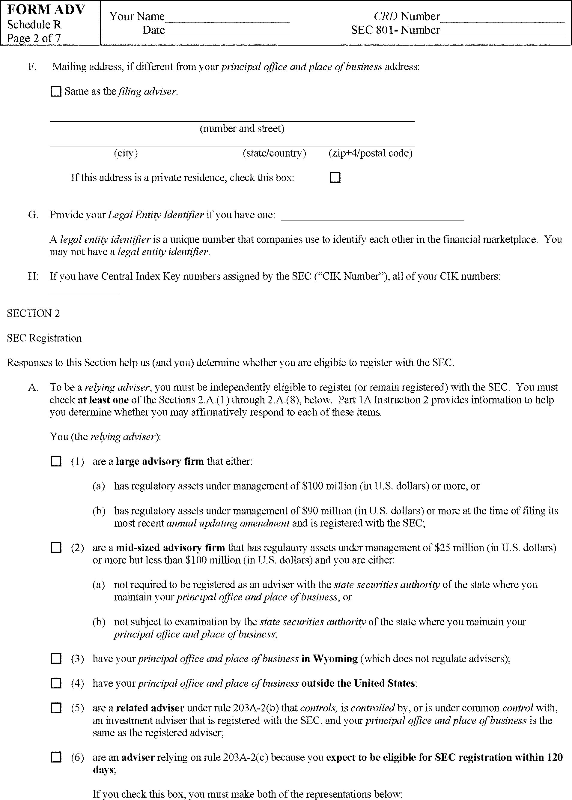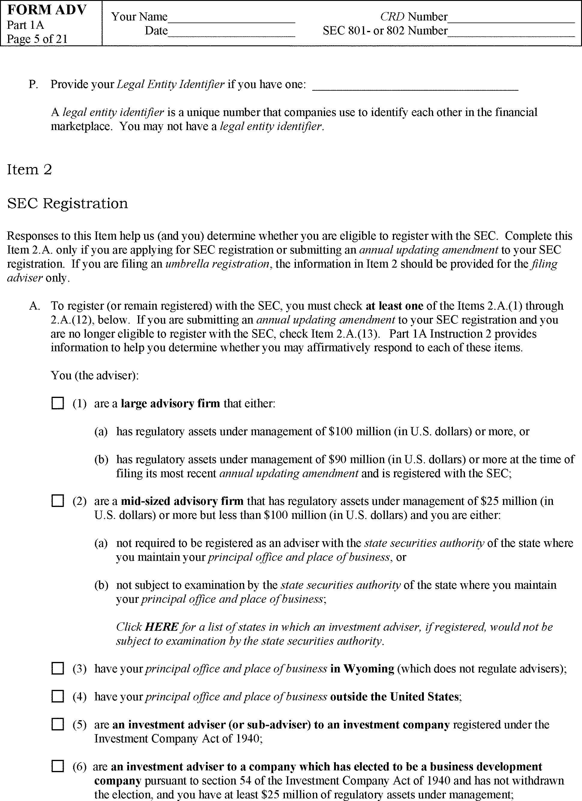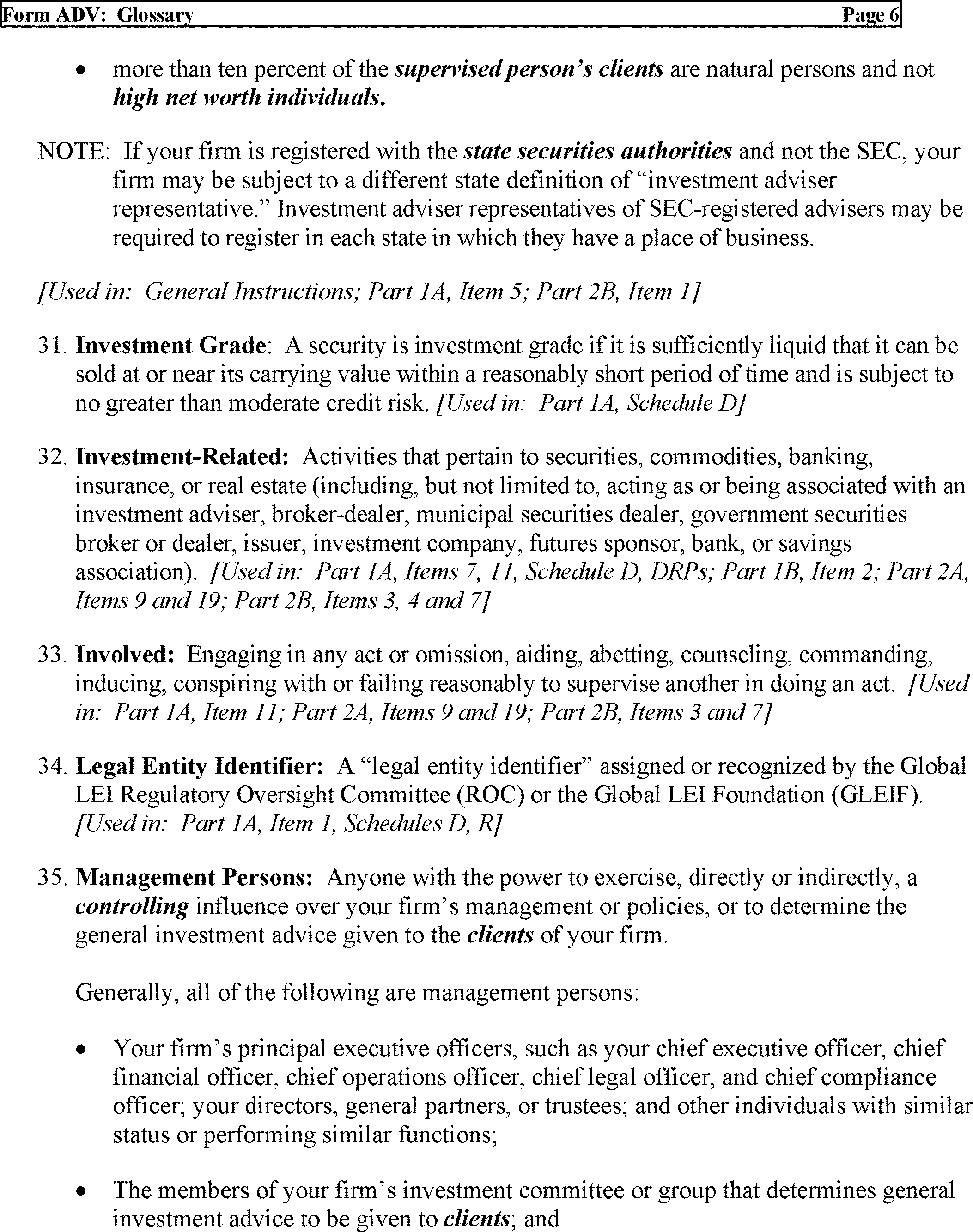 “92 The proposed definition of Legal Entity Identifier is: A “legal entity identifier” assigned or recognized by the Global LEI Regulatory Oversight Committee (ROC) or the Global LEI Foundation (GLEIF). See Proposed Form ADV: Glossary. In Item 1, we propose removing outdated text referring to the “legal entity identifier” as being “in development” in the first half of 2011.”